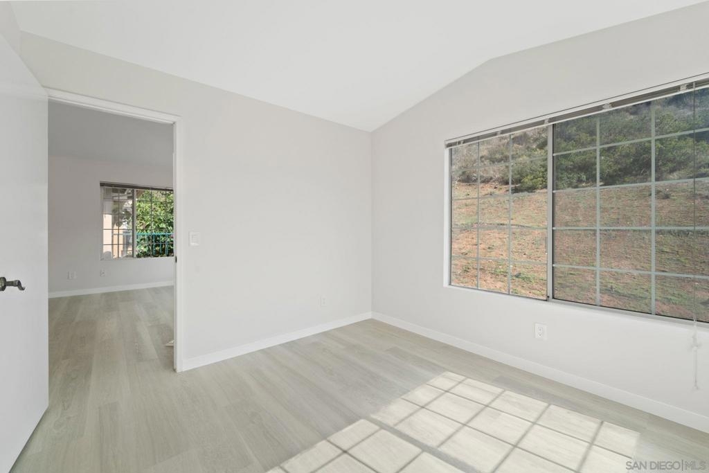 Sun filled top floor corner 3-br home in pristine resort-like Vista Del Lago. Largest floor plan in Morada! Carefully remodeled w/ brand new LVP flooring, new paint, new quartz kitchen countertops. Vaulted ceilings w/ fireplace. Primary suite w/ large walk-in closet. In-unit laundry, A/C, private balcony with hill views. RARE 1-car garage & assigned parking. Poway school district. Morada offers private pool & spa, walking trails plus enjoy Vista Del Lago’s heated pools, tennis & basketball courts, BBQ, clubhouse facilities. Minutes to freeway, golf, nature, RB shopping. Enjoy resort style living at the highly sought-after gated community of Morada at Vista Del Lago! 1-car garage plus parking spot. Ample guest parking and EV charging stations. Morada owners enjoy Vista del Lago’s state of the art amenities with gated entry, clubhouse, two sparkling pools and spas, an exercise room, recreation room, lighted tennis courts and BBQ areas. Quick access to the freeway will make commuting a breeze. Close to Rancho Bernardo Community Park with dog park, tennis courts and ball fields. Minutes to golf, North County Fair shopping mall, Safari Park, numerous restaurants and surrounded by open space providing miles of trails to explore all year long.