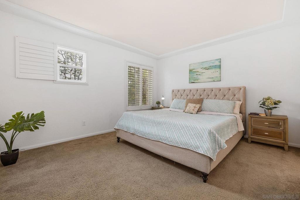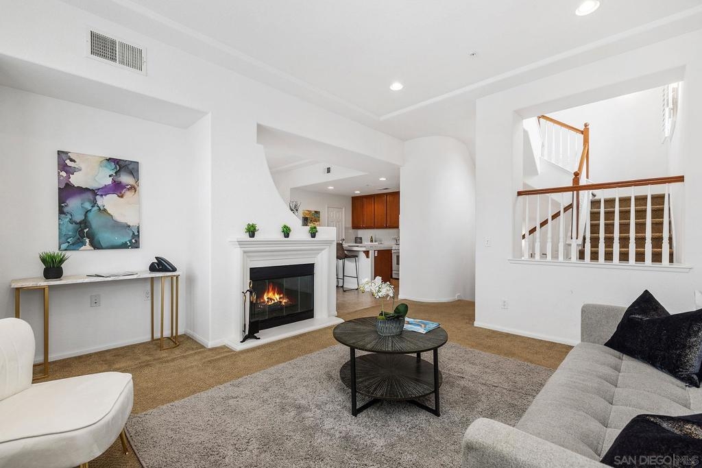 Corner Townhome Steps away from 46 Acre Waterfront Park! This End Unit Townhome is in a Great Location in Liberty Station and Features a Bedroom and Bathroom on each floor and a Guest Half Bath on the Main Level. It has a 2 Car Attached Garage and is nestled in among Trees for a Beautiful View out all Windows! There is a Large Balcony and Focal FPL in the Family Room which is Open to the Kitchen and Dining Room Combo. There is a Laundry Area on the Main Level as Well. The Water Heater is Brand New as well! Located in sought after Walking Village of Liberty Station with Trader Joe's, Vons, Rock Church, High Tech Schools, Loma Club 9 Hole Executive Golf Course, The Lot Luxury Movie Theater and Soooo much more!!!