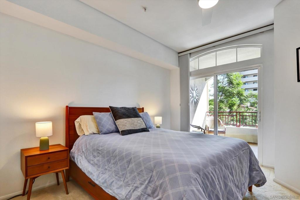 Introducing a rare opportunity to own a meticulously remodeled 1-bedroom, 1-bathroom condo in the prestigious Laurel Bay community. Nestled in the sought after neighborhood of Park West, this stunning unit offers views of Balboa Park directly from your private balcony. This condo is truly a sanctuary of modern elegance, featuring a fully remodeled bathroom and kitchen with new stainless steel appliances, a bay window seat facing the park and a fireplace that adds warmth and charm to the living space. The building welcomes you with a grand lobby and offers an array of premium amenities, including a pristine courtyard, a sparkling pool, and hot tub for unwinding. Maintain your fitness routine in the fully equipped fitness center, and utilize the business center for all remote working needs. Finally, the entertainment room provides an excellent venue for hosting social gatherings and events. Located just steps from Balboa Park, you are also walking distance to the vibrant neighborhoods of Little Italy and Hillcrest, offering a plethora of dining, shopping, and cultural experiences. Don't miss this unique opportunity to live in one of the most desirable locations, combining luxury living with unparalleled convenience.