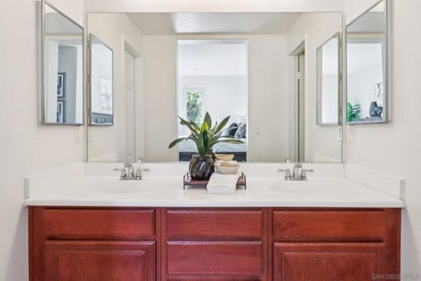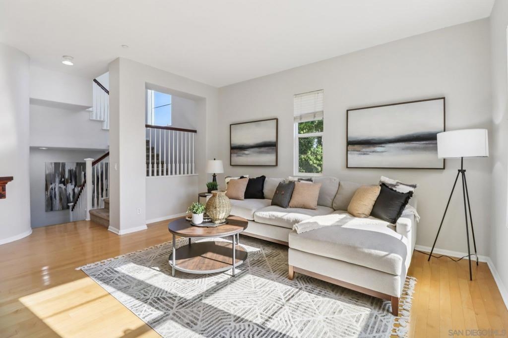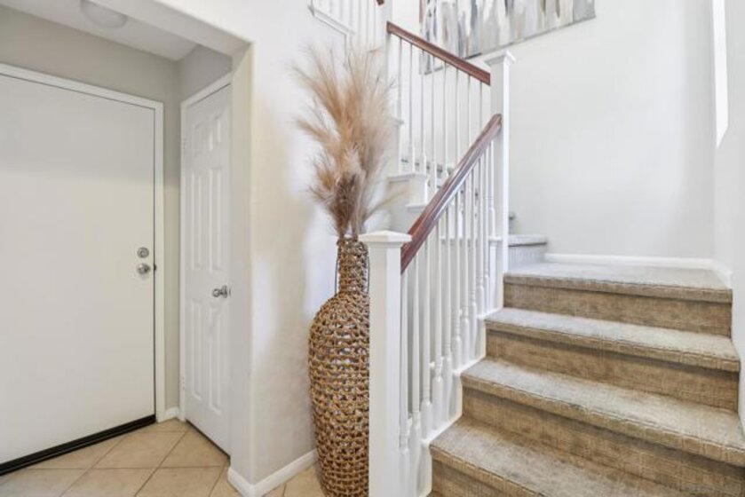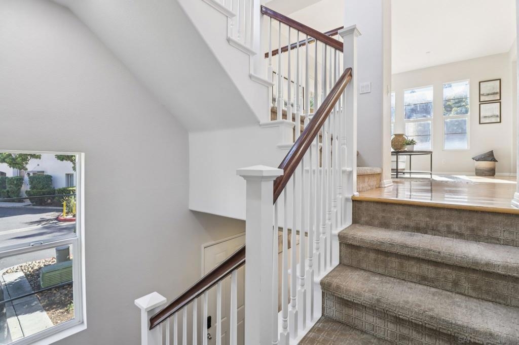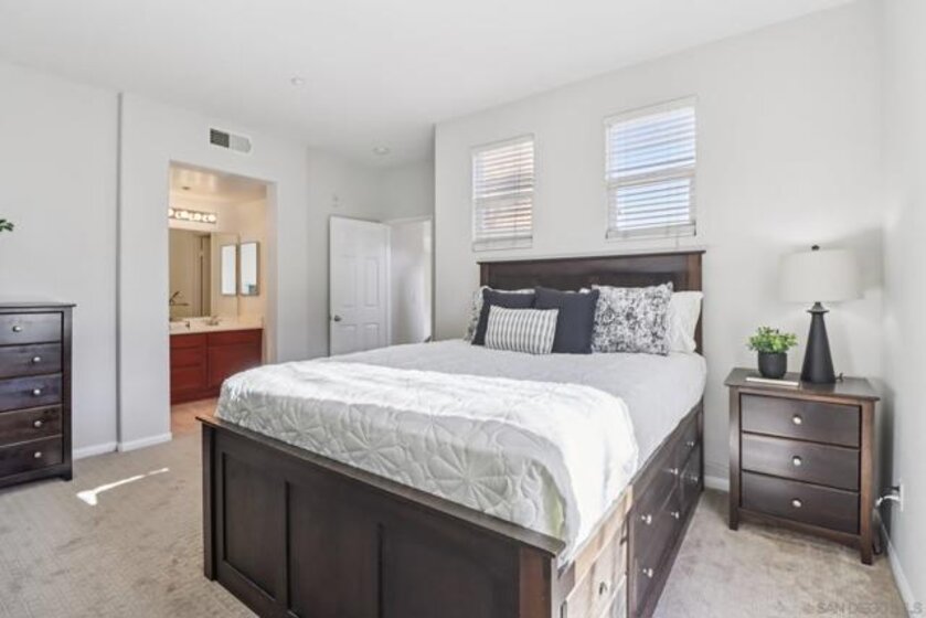 Welcome to one of Escala’s most desirable offerings, an end-unit townhome in the gated Bridges collection, featuring the largest floor plan in the community. Thoughtfully designed with 3 spacious bedrooms, each with its own en-suite bathroom, this home delivers the ideal blend of comfort, functionality, and privacy. A first-floor bedroom provides the perfect setup for guests, a home office, or multigenerational living. Soaring ceilings and oversized windows fill the home with natural light, creating an open and inviting atmosphere throughout. The main living space is anchored by a cozy fireplace and flows seamlessly to one of three private balconies—perfect for morning coffee or relaxing evenings. The kitchen is equipped with stainless steel appliances and ample workspace, while newer carpeting throughout the bedrooms and stairways adds a clean, updated feel. The attached two-car garage offers direct access, and guest parking is conveniently located just steps away. As an end unit with only one shared wall, this home offers enhanced privacy and a quiet, single-family-home feel. Residents of Escala enjoy access to resort-style amenities including two pools, tennis courts, a fitness center, spa, clubhouse, playground, and dog park—all surrounded by beautifully maintained grounds and walking paths. Centrally located in Mission Valley, you're just minutes from Fashion Valley, Snapdragon Stadium, top dining, beaches, and Downtown San Diego. A rare opportunity to own one of Escala’s premier homes, where comfort, convenience, and community come together.