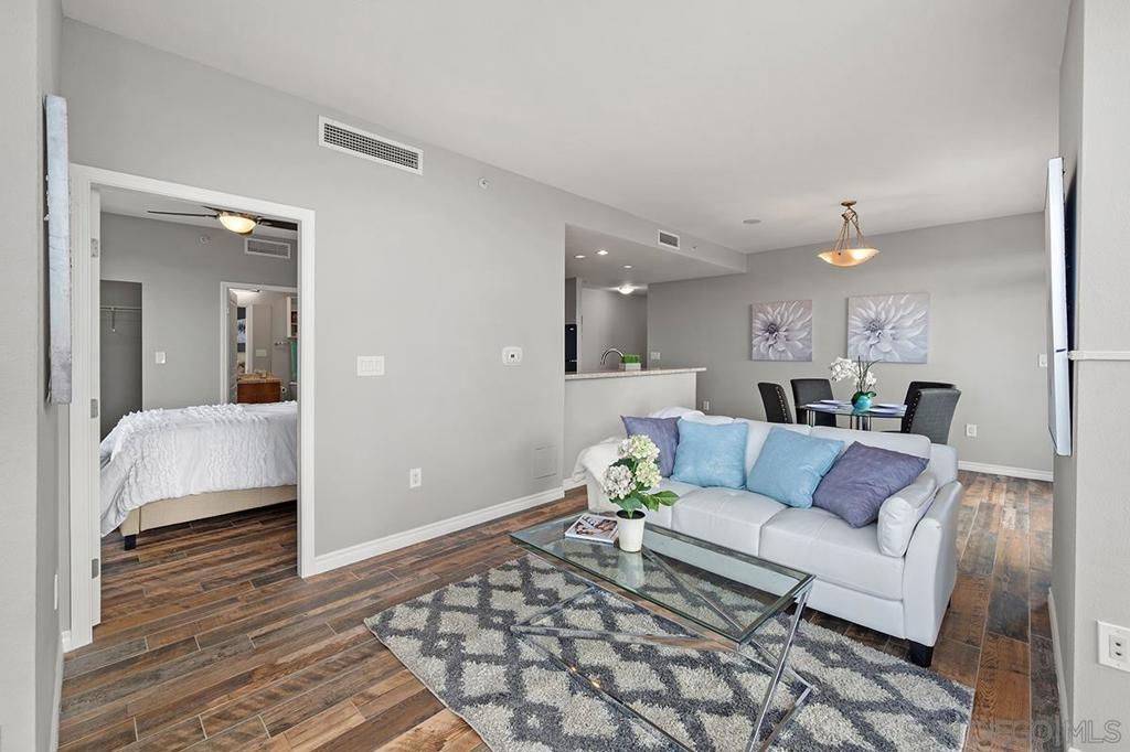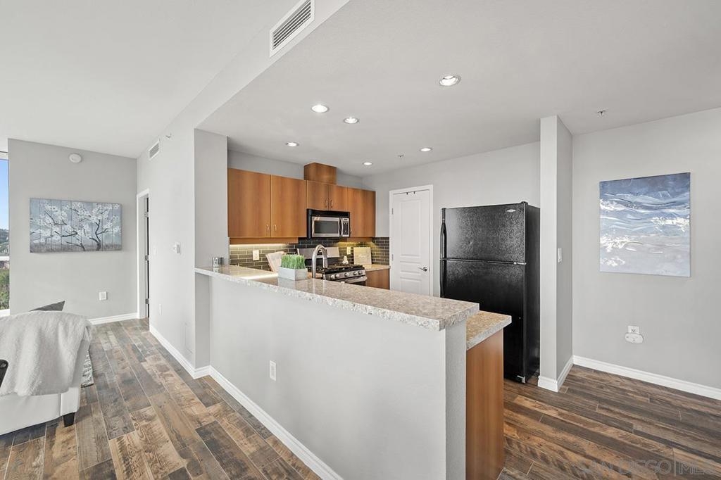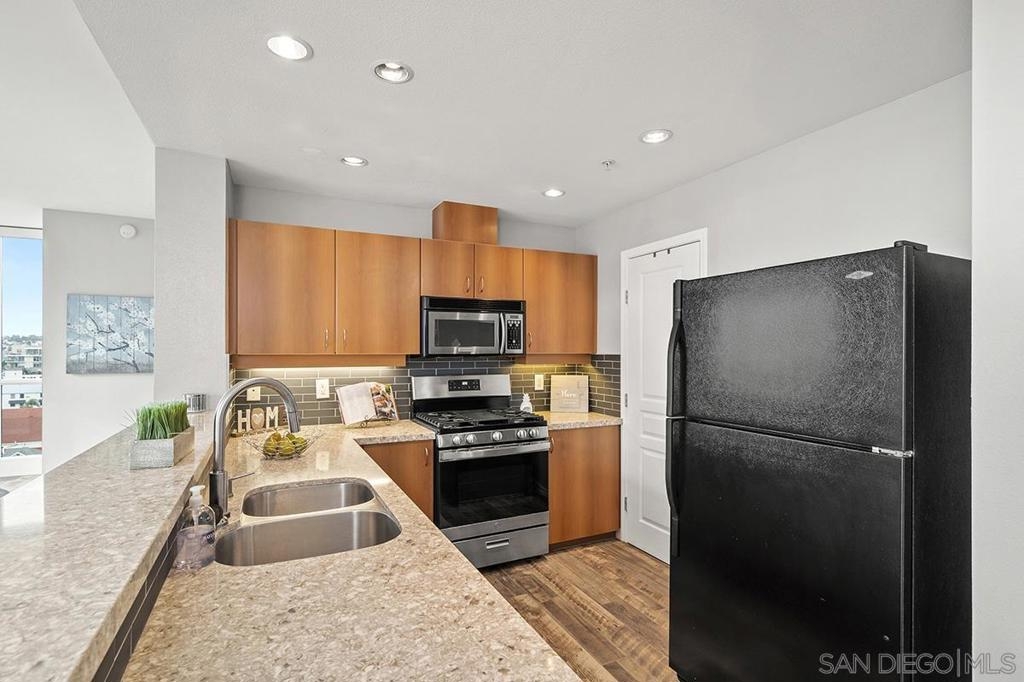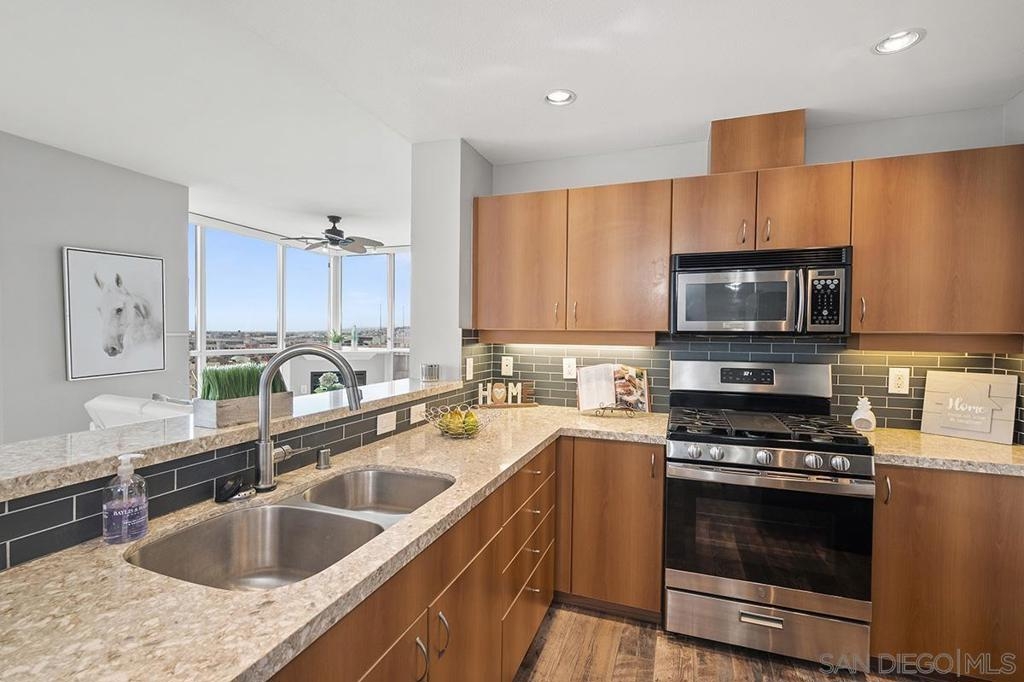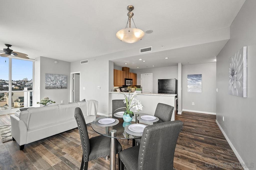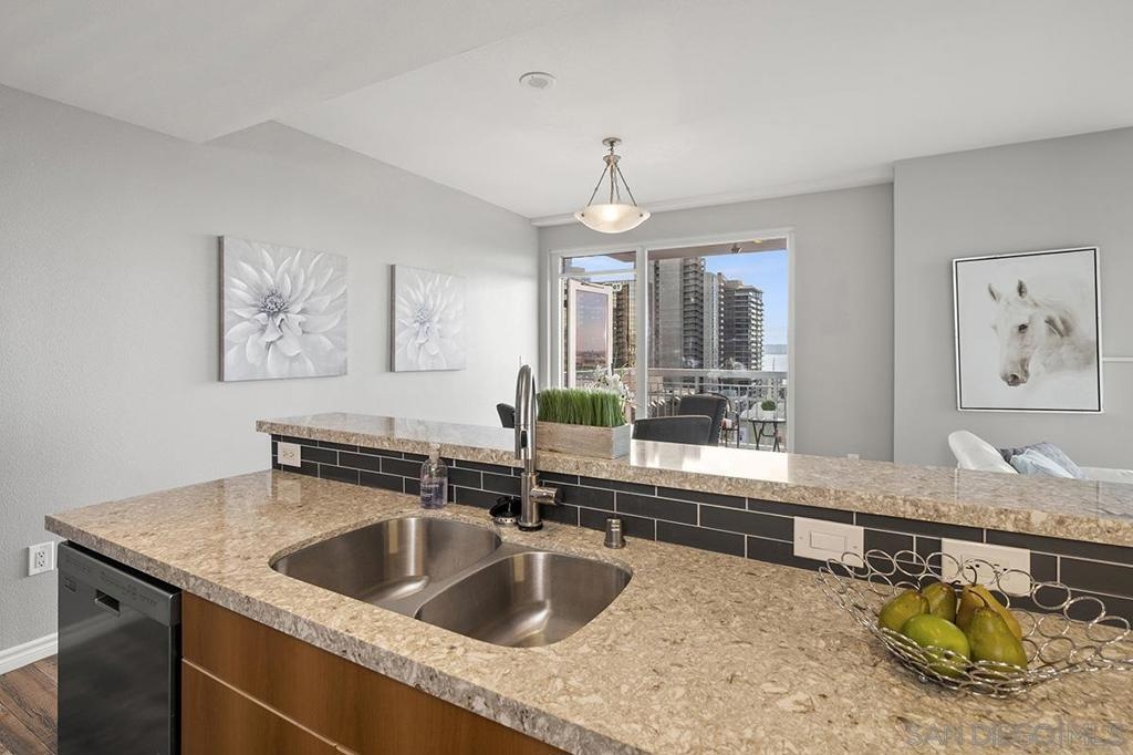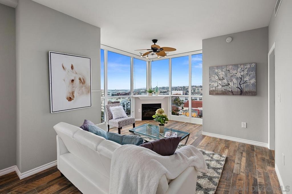Ideally positioned in the coveted northwest corner of the La Vita residences, this beautifully appointed 2-bedroom, 2-bath home captures sweeping bay and city views in one of Downtown San Diego’s most cherished neighborhoods. Spanning approximately 1,132 square feet, the residence showcases upgraded wood-grain ceramic tile flooring, an inviting fireplace, a desirable split-bedroom floor plan, and a private balcony offering a front-row seat to the energy and charm of Little Italy. The thoughtfully designed kitchen features granite countertops, a custom tile backsplash, recessed and under-cabinet lighting, and a convenient breakfast bar—perfect for both everyday living and entertaining. Both bedrooms offer generous walk-in closets, complemented by central heating and air conditioning, ceiling fans, refined baseboards, and the convenience of two side-by-side parking spaces. Offered furnished or unfurnished, La Vita residents enjoy an exceptional collection of resort-style amenities, including a pool and spa, fitness center, lushly landscaped courtyards with fountains, barbecue areas, sun deck, and a recreation room with pool table. Just moments from acclaimed dining, boutique shopping, the waterfront, Seaport Village, the Gaslamp Quarter, and Petco Park, this is urban living at its finest—an exceptional opportunity to experience the vibrant Little Italy lifestyle.