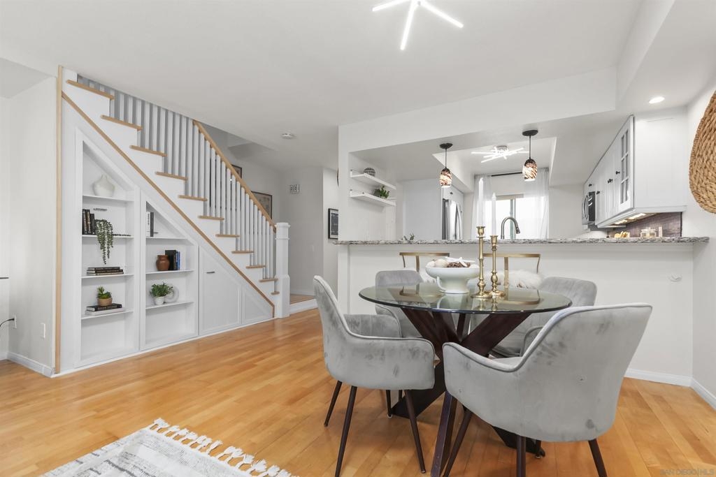Completely remodeled and move-in ready, this Point Loma residence blends modern upgrades with timeless coastal convenience. The kitchen showcases granite counters and a bar that opens to the dining and family rooms. All three bathrooms were recently redone—both upstairs ensuite baths taken down to the studs, one with a jetted tub/shower combo and the other with a full-size shower, plus a first-floor powder room with custom tilework and pedestal sink. A new custom hardwood staircase and railing provide enhanced safety and striking design. Other highlights include hardwood flooring on the main level, gas fireplace, built-in ceiling speakers in the family room, recessed lighting, upstairs laundry, and a unique custom under-stair storage system. System upgrades include a new energy-efficient HVAC with smart thermostat and all-new dual-pane windows and sliding glass door. The private fenced patio is ideal for outdoor dining or gardening. Gated garage parking includes an oversized private storage room. With no neighbors above or below, this turnkey home offers the feel of a detached residence just minutes from beaches, Liberty Station, Downtown, and the airport. The kitchen was thoughtfully upgraded with custom cabinetry featuring pull-out drawers for maximum function and storage. Both ensuite bathrooms were rebuilt down to the studs with custom tile, glass enclosures, and new ventilation—one with a jetted tub/shower combo and the other with a full-size shower—while the powder room was redone with new tile, a pedestal sink, and ventilation. A brand-new custom hardwood staircase and handrail replaced the original, providing both safety and design impact. Additional enhancements include new recessed lighting, newer carpet upstairs, fresh interior paint, and a custom-built under-stair storage system designed specifically for this home with three pull-out sections. Outdoor improvements feature a private fenced patio with pavers, added outlets, and new exterior lighting. Systems were upgraded with a brand-new energy-efficient heat pump/HVAC with smart thermostat and all-new dual-pane windows and sliding glass door.