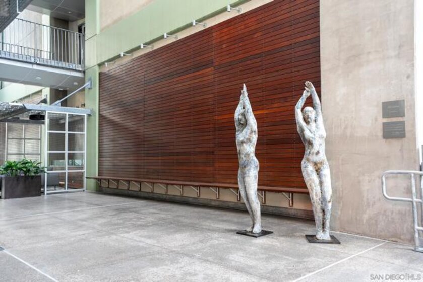 Experience elevated downtown living in this highly customized 2-bedroom, 2-bath residence at ICON, a premier concrete and steel high-rise in the heart of East Village. Sweeping northwest-to-southwest views stretch beyond the skyline to include the San Diego Central Library, distant mountain ranges, and glimpses of the bay. Floor-to-ceiling tinted windows frame the scenery while enhancing privacy and comfort throughout the home. Extensive custom upgrades set this residence apart, including a built-in Sonos sound system discreetly integrated within the walls for a clean, immersive experience. The primary suite is a true retreat, featuring automated blinds and a spa-inspired bath. A stackable washer and dryer are conveniently located in the in-unit closet, and nearly every detail has been thoughtfully customized for modern urban living. ICON delivers a secure, full-service lifestyle with controlled-access lobbies, underground parking, 24-hour on-site property management and staff, and residential trash chutes on every floor. The home includes secure two-car tandem garage parking. Residents enjoy a 1,700-square-foot fitness center with WiFi, a community theater room with raised seating and a 135-inch HD screen, and the 5th Inning Community Lounge with a full kitchen, TV, WiFi, and comfortable seating ideal for larger gatherings. The rooftop Skybox and viewing terrace, located across the street from Petco Park, offer unobstructed ballpark views with BBQs, surround sound, space heaters, and WiFi—perfect for enjoying games, concerts, and city events year-round!