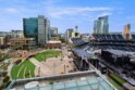 This 10th floor 2 bedroom/2 bath condo at The Legend is a homerun; captivating views directly into San Diego’s famed Petco Park! First time ever offered for sale by the original owner, enjoy baseball games and open-air concerts right from your living room or your spacious balcony – or from the incredible 7th floor ‘Club Legend’ deck. Great natural light from expansive windows, new paint and carpet, a split-bedroom floor plan ideal for privacy, and an open-concept granite and stainless kitchen. Complete with a parking space near the elevator and private storage just steps from your front door. First of this floor plan to hit the market in 6 years! See supplement for more details. The gourmet kitchen is a chef's dream, showcasing stainless appliances, granite countertops, European-style cabinetry, and an inviting eat-at bar illuminated by elegant pendant lighting. Floor-to-ceiling windows not only flood the condo with natural light but also offer breathtaking, unobstructed views of Petco Park and Gallagher Square. The split-bedroom floor plan is perfect for privacy for roommates or guests. The primary bedroom suite doesn’t skimp on views either. The ensuite bathroom features a dual vanity, tasteful custom tile backsplash, and frameless glass-enclosed shower. The Legend is the only residential high-rise to be built inside the gates of our Major League Ballpark & the only residential tower to be built on the 3-acre Park at the Park / Gallagher Square! This iconic building overlooking the Padres ballpark (voted the best ballpark in America) will be treasured for generations with historic detailing preserved by Bosa Development to create a world-class residential tower. The Legend is centrally located just a few blocks from the Gaslamp Quarter & Marina District for convenient access to endless shopping & dining options. The Legend’s amenities include a 2nd floor rooftop deck looking out over Park at the Park complete with pool & spa, fully equipped fitness room, roof garden, barbeque area, steam, sauna, and changing rooms. Entertain guests in ‘Club Legend’, the 7th-floor social lounge featuring a sprawling rooftop terrace with panoramic Petco Park views and a cozy outdoor fireplace lounge and outdoor kitchen. Additional conveniences include guest parking reservations via mobile app, 24-hour concierge and security services, and plans for EV charging stations within the secured garage. Previous builder documents cited 972 sq .ft., assessor records now indicate 888 sq. ft. VA Approved (000017) & FHA Approved(S007729)!