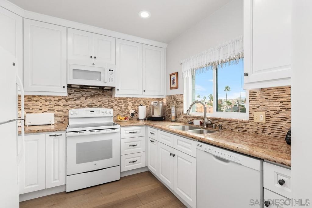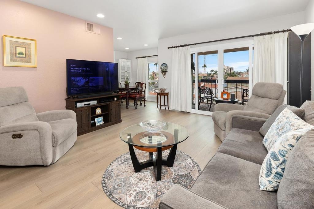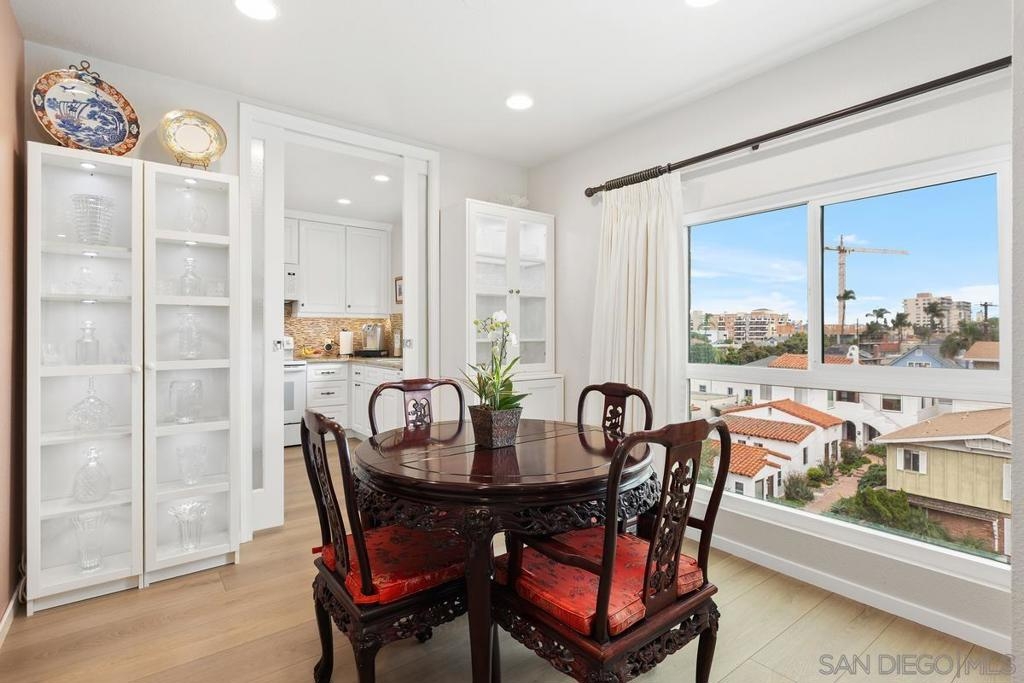 You'll love this comfortable and stylish home recently made new again! Commanding the 4th floor corner of this venerable Uptown midrise, it provides bright two sided exposure and only one common wall with neighbors. These appealing rooms and amenities are a tale of twos - two bedrooms, two baths, two balconies, two parking spaces, two storage spaces. Often sought and seldom found the unit combines the features and the feel difficult to describe but known when you see it And then there is the highly desirable location - See Supplemental Remarks and Documents Tab for details. INTERIOR UPGRADES: over $100K in upgrades/remodeling including dual pane windows, maple floors, interior painting, granite kitchen counter tops, cabinets, appliances, ceiling lighting, rebuilt ensuite bath in principal bedroom, newer heat/AC heat pump, 'Murphy Bed' installed in second bedroom. See Tab D for more details. APPEALING FEATURES: twelve hundred plus S.F. in an efficiently assembled unit, side by side style parking, sizable walk-in closest in principal bedroom, inviting entry. COMPLEX PLUSES: competitive HOA fees, heated pool, hot tub, BBQ and outside dining area, some guest parking, new roof, rebuilt elevators, new security system. See Tab D for details LOCATION ADVANTAGES: walk to Balboa Park and its museums, theaters and world famous zoo. Walk also to Hillcrest center including shopping, dining, entertainment, two major medical centers and attendant professional offices. Minutes to downtown, airport, malls and San Diego's principal attractions.