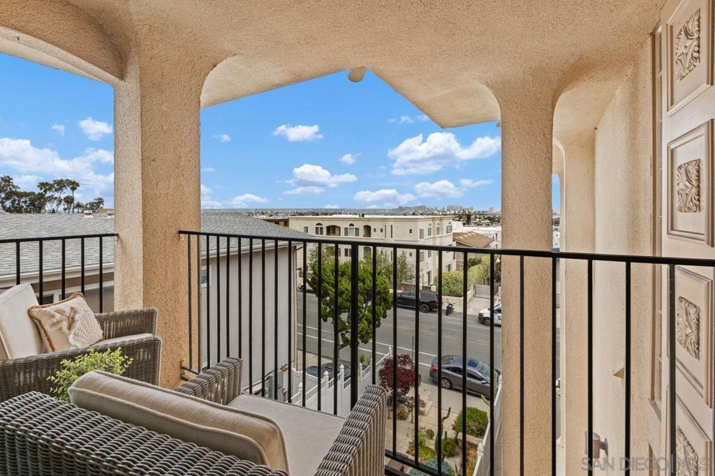 Welcome to a wonderful, single level condo located in the heart of the desirable neighborhood of La Playa in Point Loma. This top floor, corner unit offers views of the San Diego Harbor, the downtown skyline and Shelter Island. Enjoy water views from the balcony, living room and from both bedrooms. The kitchen is complete with granite counters, a walk-in pantry and opens to a dining area with a skylight. The spacious living room has a fireplace and a built in wet bar. Perfect for relaxing or entertaining. Features include newer windows with wood shutters, ample storage throughout, an in-unit laundry room and AC. The secured parking garage includes one dedicated parking spot with a metered outlet for EV charging and a storage closet, plus access to the community gym and sauna. Here is your opportunity to live in this fantastic coastal community just one block from Kellogg Beach, with close proximity to Yacht Clubs, the La Playa Trail and the shops and restaurants of Point Loma Village and Shelter Island.