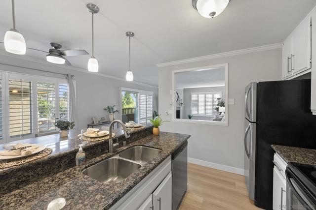Welcome to Harbor Villas, nestled in the desirable Point Loma and Ocean Beach communities! Enjoy the best of coastal living with quick freeway access, just a 5-minute drive to the beach, and an easy stroll to lively Voltaire Street—home to local restaurants, shops, and fitness studios. This refreshed home features brand-new luxury vinyl plank flooring, triple-paned windows, plantation shutters, and crown molding throughout. The kitchen and bathrooms have been tastefully updated to blend modern style with relaxed coastal charm. Additional highlights include a two-car garage with extra storage, in-unit laundry conveniently located on your private patio, and one of the lowest HOA fees in the area. Experience comfort, style, and convenience—all in one beautiful coastal home!