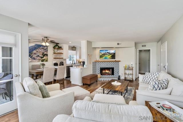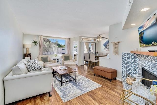 Welcome home to this light-filled top-floor residence located just minutes from Sunset Cliffs, Ocean Beach, Mission Bay, Downtown, and Liberty Station. Positioned within a beautifully maintained community, this home offers exceptional convenience, lifestyle, and value. Step inside to an open-concept living area with large windows that maximize natural light and frame the inviting fireplace. Enjoy coastal breezes and outdoor relaxation on your private balcony—ideal for morning coffee or winding down at sunset. The well-appointed kitchen features a gas range, microwave, dishwasher, and a newer refrigerator, offering everything you need for easy everyday living and entertaining. A full-size washer and dryer are located inside the home for added comfort and efficiency—no laundromat required. Both bedrooms are generously sized. The primary suite provides a peaceful retreat, while the secondary bedroom is perfect for guests, a home office, or fitness room. A BRAND-NEW ROOF was recently installed, offering peace of mind and true move-in readiness. The community features lush landscaping, two sparkling pools, a spa, and covered parking. HOA dues include water and trash services, helping keep ownership costs low and predictable. Whether you’re seeking a low-maintenance primary residence, a coastal getaway, or a smart investment opportunity, this property delivers standout value in one of San Diego’s most desirable, centrally located coastal neighborhoods. Don’t miss your chance to own affordable coastal living with amenities, location, and lifestyle all in one.