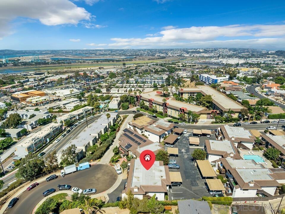Imagine yourself sitting on your Point Loma oversized patio watching the sunset every night…..This is the life!! This lovely 2 bedroom, 2 bath, 1182 SF single level condo offers panoramic, unobstructed views of the ocean, Sea World and sunsets. The primary en-suite also includes an abundance of closet space. Enjoy a neutral, updated feel with red oak engineered wood floors through the bedrooms and living spaces of the home. An open floor plan which includes a cozy fireplace and lots of large windows creates a light and bright living space. In unit laundry, 2 side by side parking spaces (one covered and one uncovered) and plenty of street parking make this is a wonderful place to live. The Quieter Homes Program which installed all new windows and AC was completed a few years ago. Point Loma Views offers a pool, spa and is centrally located with nearby shopping and restaurants. Easy access to SD Int’l Airport, Downtown San Diego and Petco Park. Equipment: Dryer, Range/Oven, Washer Sewer: Sewer Connected Topography: LL,GSL