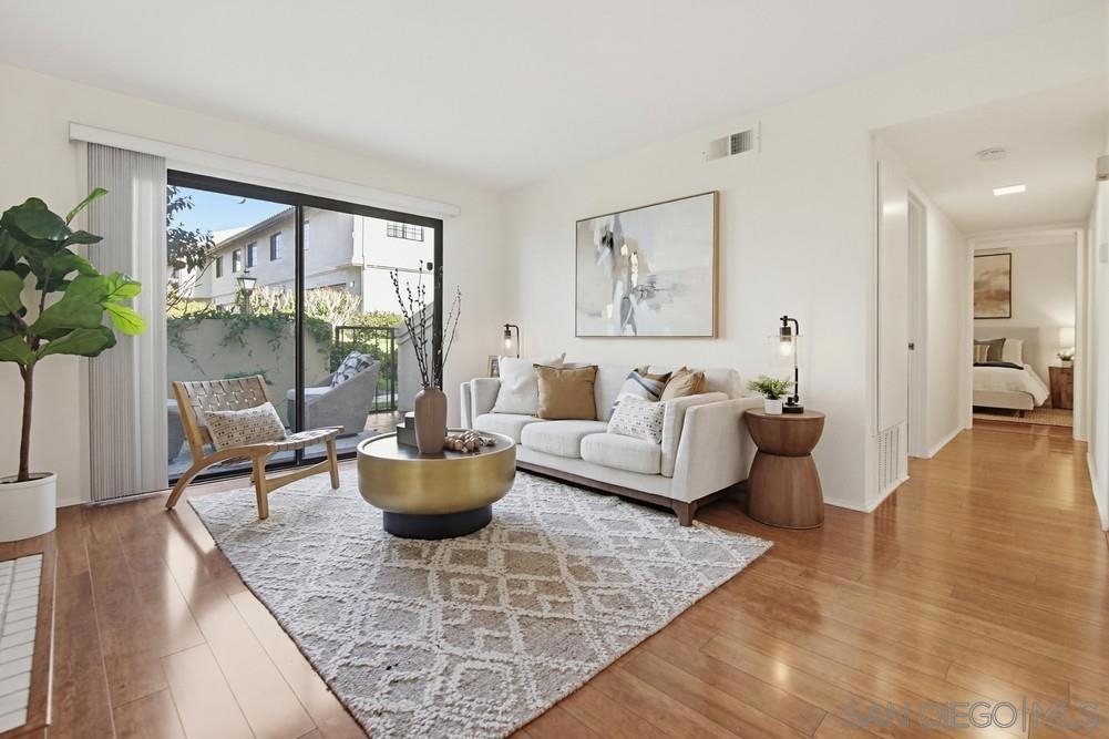 Welcome home to the desirable Las Palmas community of University City. This charming single story townhome features 2 bedrooms, 1 bathroom and a RARE 2-car attached garage! Well maintained and ready for you to move in, enjoy the gas fireplace during cooler months or take in San Diego's amazing weather year round from your private patio. The spacious primary suite includes a large walk-in closet and additional vanity/sink, and there is also in-unit laundry for added convenience. The community is beautifully manicured and located to nearby shopping, dining, highways and canyon trails for walking or hiking.
