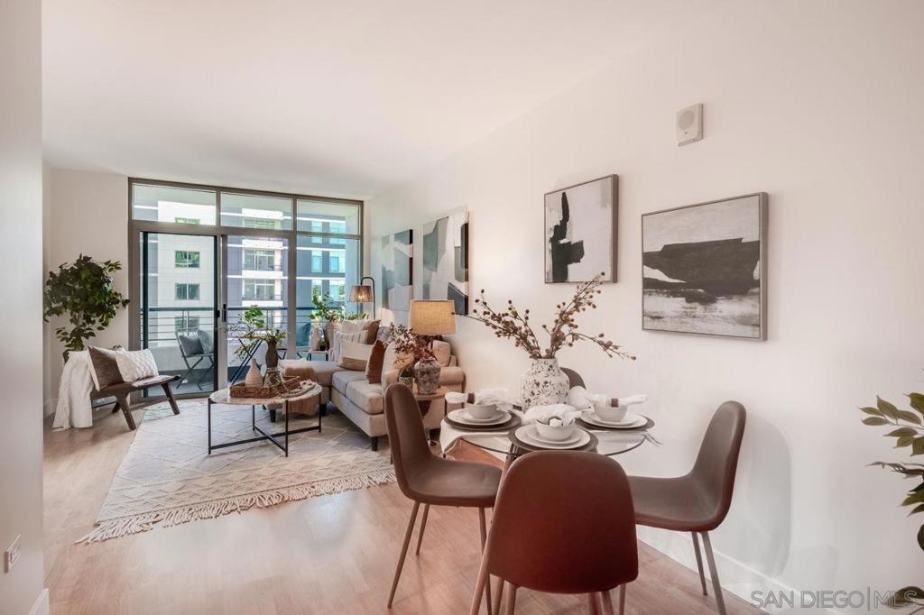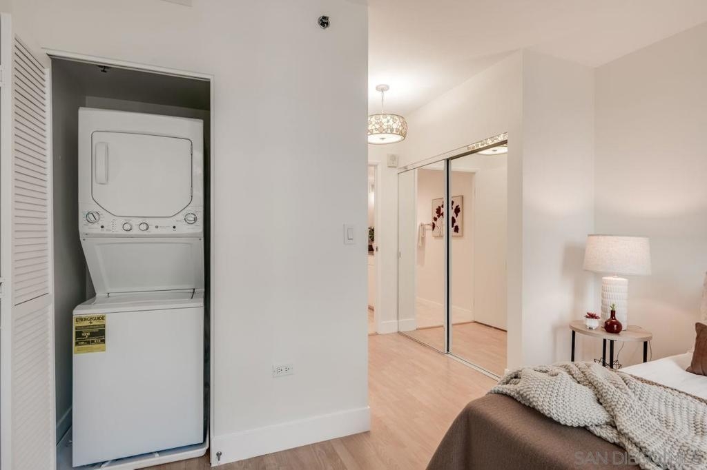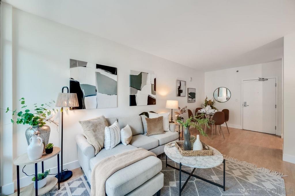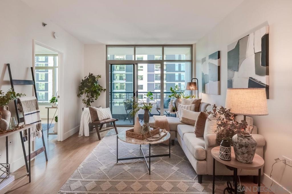 Welcome to your urban sanctuary at 425 West Beech Street, Unit 1353, nestled in the coveted Acqua Vista community in Little Italy. This sophisticated 1-bedroom, 1-bathroom residence offers 661 square feet of smartly designed living space, complete with stunning city views from a private higher-floor balcony. The modern kitchen features stainless steel appliances, dishwasher, microwave and an attractive backsplash. The spacious bedroom provides tranquility, while floor-to-ceiling windows fill the home with natural light. Additional comforts include an in-unit washer/dryer and central air conditioning. Acqua Vista was recently renovated and offers premium, resort-style amenities such as valet parking for one car, an 8th-floor rooftop pool and spa, a well-equipped fitness center, fire tables, and a communal BBQ area. Residents also enjoy EV charging stations, Amazon lockers, full-time security, a 24-hour concierge, and an on-site HOA manager. Experience the vibrant lifestyle of Little Italy—just steps from the renowned Little Italy Farmers Market, the scenic waterfront, and a variety of award-winning cafés and restaurants. The exceptional location and amenities make this home ideal as a primary residence, a stylish second home, or a smart investment opportunity.