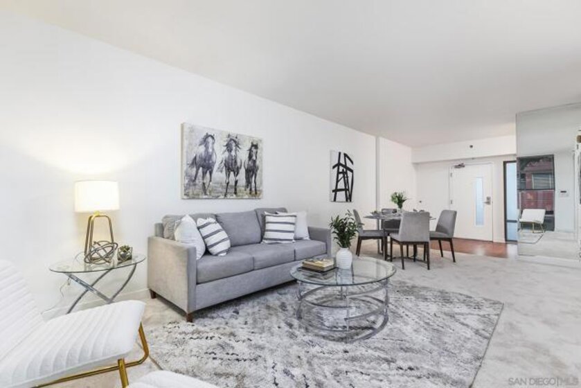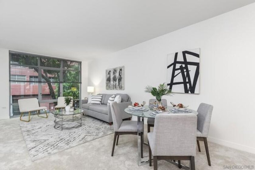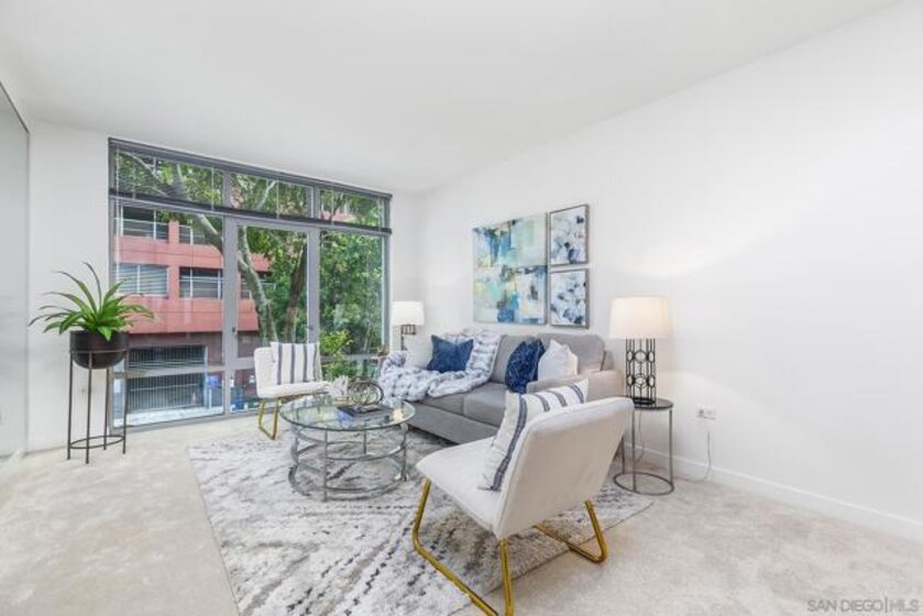 Welcome to the highly desirable Aqua Vista, your urban-meets-coastal escape in the heart of San Diego! This charming 766-square-foot condo, built in 2004, is tucked within the highly sought-after Downtown community, offering a perfect balance of tranquility, comfort, and vibrant city living. Nestled next to Little Italy, you’ll be just steps away from buzzing cafés, iconic restaurants, artisan markets, and peaceful waterfront strolls. Inside, this inviting one-bedroom, one-bath retreat features an open layout that seamlessly connects the living, dining, and kitchen areas—excellent for entertaining or unwinding after a day of exploring the city. The charming galley-style kitchen offers a refrigerator, microwave, and dishwasher, providing everything you need for easy, efficient daily living. Residents enjoy an impressive array of community amenities, including a sparkling rooftop pool & spa, a fitness center, two welcoming lobbies, and outdoor barbecue areas perfect for gatherings. Additional conveniences—such as air conditioning and valet garage parking for one car—enhance your everyday comfort. In-unit laundry makes chores a breeze, giving you more time to enjoy Little Italy’s lively energy or take in San Diego’s stunning shoreline. Your ideal San Diego home awaits—don’t miss this incredible opportunity!