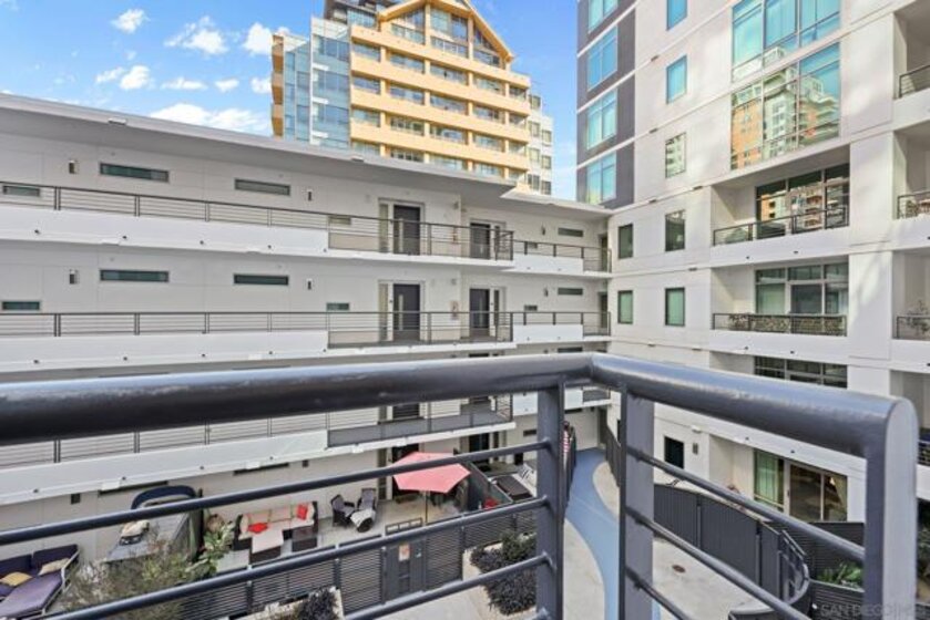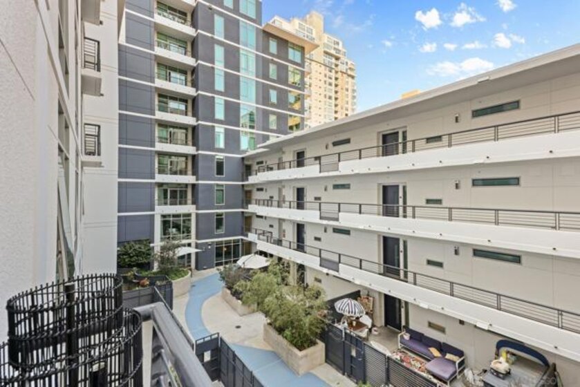 Stylish, centrally located 2-bedroom condo in the premium Acqua Vista complex! Situated in the heart of Little Italy, this home's spacious layout opens onto a sleek, upgraded and modern kitchen with contemporary finishes. Its dedicated dining area flows into the bright living space. The interior courtyard location allows for added privacy and a quieter atmosphere. The large primary bedroom includes a generous walk-in closet, while the in-unit laundry creates added convenience. Residents of Acqua Vista enjoy upscale amenities, including 24-hour security, a community attendant in the lobby, and valet parking. Recent HOA upgrades have transformed the building with new designer-selected interiors, fresh exterior paint, lush landscaping, upgraded carpeting, and curated artwork throughout. The completely renovated pool and spa area now offers fire tables, cabanas, lounge seating, and BBQ stations, all perfect for entertaining. Step outside to explore Little Italy’s vibrant mix of cafes, fine dining, weekend farmers markets, and scenic waterfront. With quick access to the 5 freeway, this coveted location keeps you close to everything San Diego has to offer.