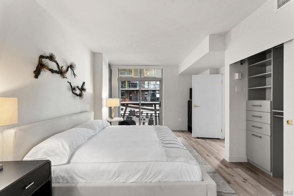 Completely renovated condo in the heart of San Diego’s vibrant Little Italy neighborhood. Every inch of this home has been updated for both style and functionality. Kitchen features quartz countertops, sleek cabinetry, and new stainless-steel appliances. Convenient in unit Asko stackable laundry. Luxury vinyl plank flooring flows throughout the space, while the light and bright condo is enhanced by the Juliet Balcony, perfect for enjoying the fresh coastal air of the San Diego Bay that is just a few blocks away. Extra large bedroom has a custom Home Decorators Collection closet system designed to maximize storage and style. The bathroom has a walk-in shower, new vanity & designer anti-fog LED mirror. See supplement for full list of updates. Located in a full amenity building with keyless entry and secure building access, you’ll enjoy: 24/7 on site staff, pool, hot tub, grilling areas, fire pits, gym, valet parking, bike storage, Amazon lockers, EV chargers, and more! Whether you’re taking in the dining scene, strolling the weekly farmer’s market, heading to Petco Park for a game, or soaking up the waterfront views, Little Italy offers the best of San Diego right at your doorstep. VA and FHA approved. This condo commands mid-term rentals of $4,000 - $5,000 per month, making it a great cash flow investment property.