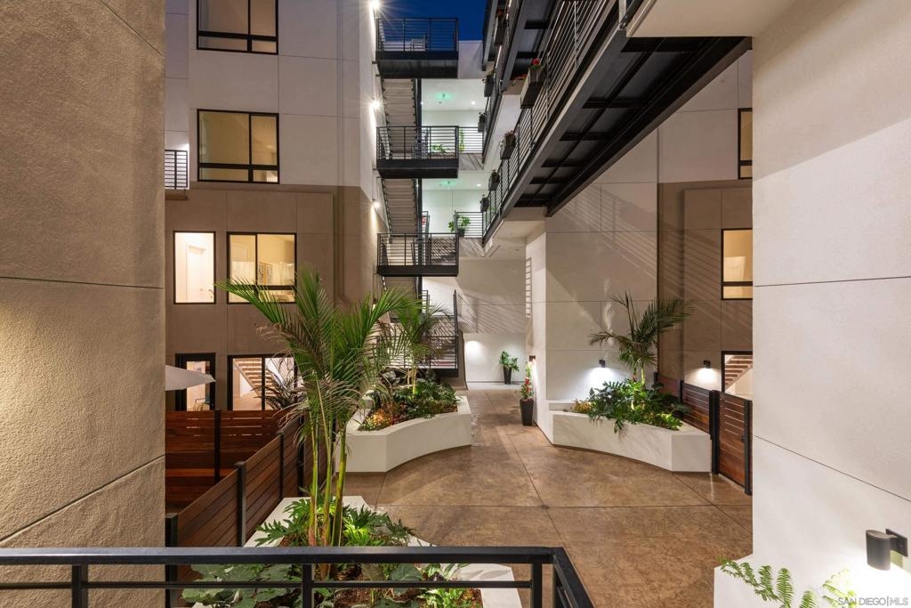 Perched on the penthouse level of the west building, this 2-bed, 2-bath home overlooks the serene northeast courtyard, offering a peaceful backdrop to a beautifully curated living space. The residence blends modern luxury with inviting, natural textures—high ceilings, premium finishes, and open living areas that feel both elevated and effortlessly livable. As part of Rendezvous, North Park’s boutique new-construction community, the home delivers a harmonious balance of style, comfort, and connection to one of San Diego’s most vibrant neighborhoods. Photos reflect model units and may differ from the exact layout. Situated in the heart of North Park, this penthouse-level residence places you moments from premier dining, shopping, and cultural destinations. Its refined design, prime location, and tranquil northeast courtyard views create a living experience that feels both elevated and effortlessly connected to the neighborhood.
