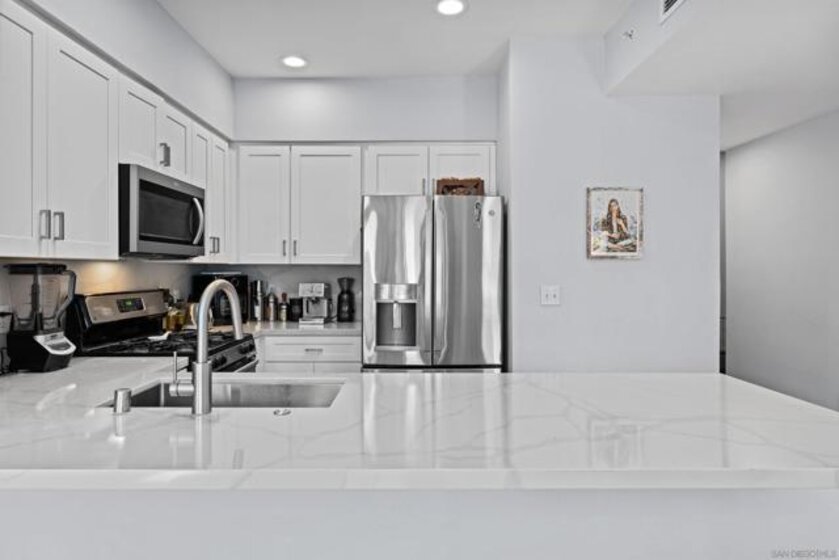 Live in the heart of the Historic Gaslamp Quarter! This residence places you at the center of Downtown San Diego’s most vibrant lifestyle. Step outside your front door to enjoy an incredible selection of cafés, coffee shops, restaurants, and shopping, while the San Diego Bay and the new high-tech office campus at Horton are just a five-minute walk away. The rapidly growing biotech and life-sciences district is only about a 10-minute walk, making this location ideal for those who want true live-work-play convenience. See supplement below.... Offering one of the most desirable layouts in the building—the southwest corner floor plan with split bedrooms and five large sliding glass doors that flood the home with natural light and create wonderful cross breezes throughout the living space. Located within Gaslamp City Square, residents enjoy unmatched walkability with Petco Park, the Rady Shell, Seaport Village, and endless entertainment options just moments away. This residence is also uniquely positioned on the same level as the resort-style courtyard, just steps from the pool, spa, lounge areas, and BBQs, and conveniently located near the fitness center. Inside, the home features a newly remodeled kitchen, updated showers, newer A/C unit, updated lighting, and modern flooring, creating a stylish and comfortable urban retreat. With its prime corner location, abundant natural light, thoughtful upgrades, and unbeatable walkability, this residence offers the ultimate urban living experience in the heart of Downtown San Diego. Get ready to upgrade your lifestyle and book a tour today.