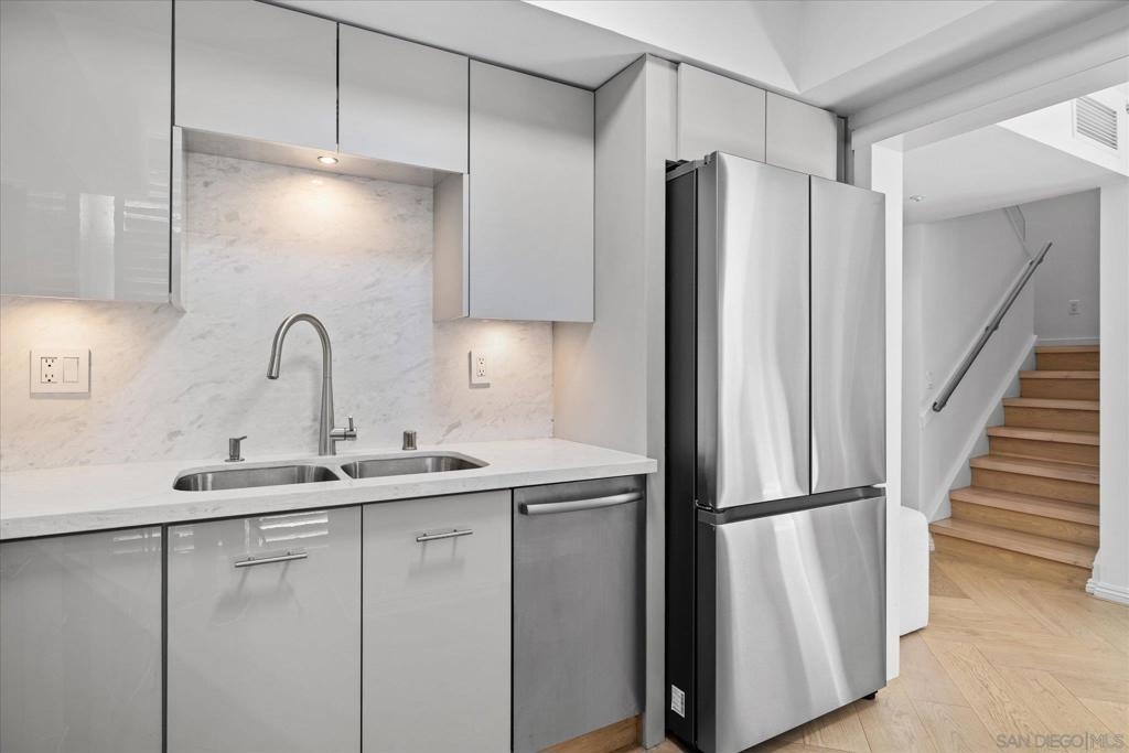 Welcome to this rare townhouse-style residence in the heart of downtown San Diego’s highly desirable Marina District. Experience the absolute gold standard of downtown living in this meticulously re-imagine CityFront Terrace masterpiece, where no detail was spared in a sophisticated top-to-bottom remodel that radiates cosmopolitan elegance. Continued in Supplement below.... The interior is completely remodeled and truly turn-key, featuring all-new appliances, refined modern finishes, and a clean, contemporary aesthetic throughout. One of the home’s most compelling features is the huge private terrace, ideal for entertaining or quiet relaxation, offering serene palm tree and grass park views—a rare and coveted outlook in downtown. This prime, ultra-walkable location places you just steps from shops, acclaimed restaurants, Seaport Village, the Rady Shell Amphitheater, the bayfront’s scenic walking paths, and everyday conveniences, including multiple grocery options and the soon-to-open Whole Foods. Located within CityFront Terrace, residents enjoy some of the finest amenities in downtown San Diego, including two resort-style pools, spa, sauna, expansive fitness center with aerobics studio, outdoor grilling and dining areas, an entertainment room, a 24-hour staffed lobby, freight elevator, optional valet parking and onsite guest parking. Adding exceptional long-term value, CityFront Terrace is recognized for having the strongest HOA financial position in downtown, with low HOA fees for a luxury high-rise and extremely robust reserves. This is a rare opportunity to own a townhouse residence in one of San Diego’s most prestigious, well-managed communities—delivering an unmatched blend of location, lifestyle, and confidence of ownership.