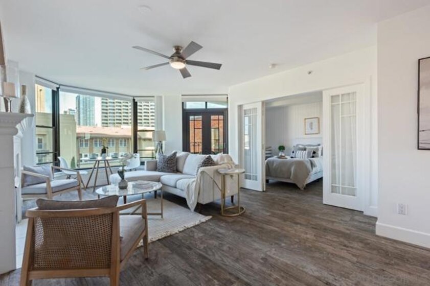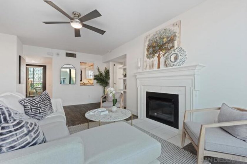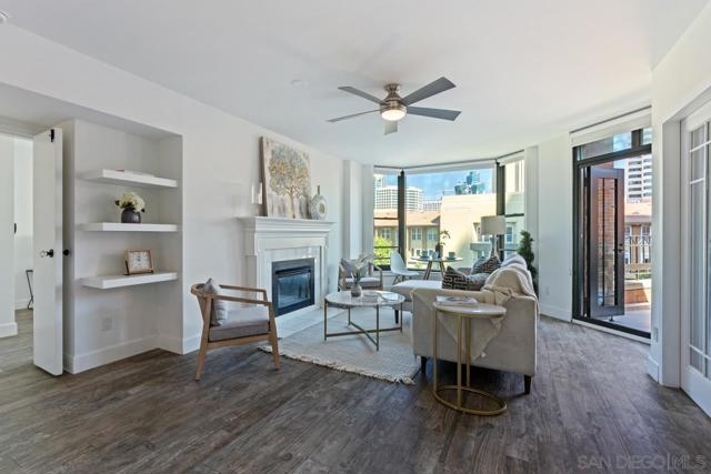 Welcome to CityFront Terrace 624 - top-floor residence in the highly sought-after Link Building! Enjoy two private outdoor seating areas, ideal for entertaining or soaking in the vibrant city views. This spacious home blends comfort, style, and functionality with its well-designed split-bedroom layout, tiled flooring throughout, stainless steel appliances, and generous closet space. CityFront Terrace offers some of the most impressive amenities in all of downtown San Diego. Perfectly positioned just moments from the city’s energy—yet set back enough to provide daily privacy and tranquility—life here feels truly elevated. At the heart of this iconic community lies the award-winning Urban Canyon, a serene garden oasis filled with lush greenery, mature oak trees, rose bushes, and a striking 90-foot waterfall that creates a peaceful retreat unlike any other. Residents enjoy resort-style living with two community pools (a lap pool and a splash pool), a jacuzzi, outdoor kitchen and BBQ area, sun deck, gazebo, fire pit, ping pong table, bicycle share program, and even an on-site ATM. The exceptional social lounge, complete with a full kitchen, bar, and cutting-edge media system, is the ideal setting for gatherings and large-scale entertaining. The community also boasts a 3,500-square-foot fitness center equipped with a full range of cardio and strength machines, an aerobics room, and men’s and women’s locker rooms.