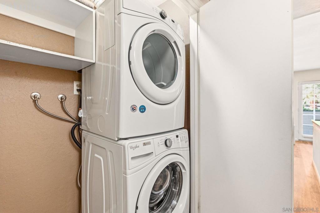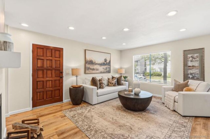 Well-appointed 2 bedroom 2 bathroom first floor condo home features a private patio with storage closet—perfect for relaxing or gardening—along with a beautifully renovated kitchen complete with new cabinetry, quartz countertops, and updated appliances. Interior highlights include durable vinyl plank flooring, a cozy fireplace, 2 bed plus 2 full baths, and an in-unit washer and dryer conveniently tucked into a closet. The spacious layout offers functional living with ample natural light throughout. Ideally located near SDSU, this property includes one assigned carport covered parking space plus abundant guest parking. Collwood Meadows offers community pool and hot tub. Enjoy a peaceful, park-like community setting while remaining close to shopping, dining, and campus amenities.
