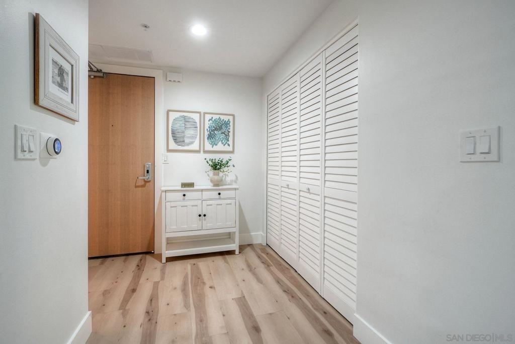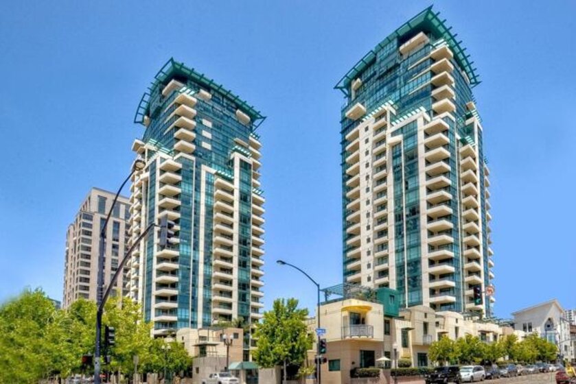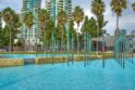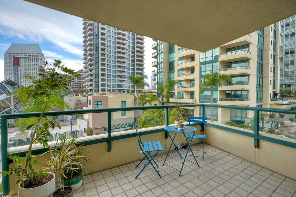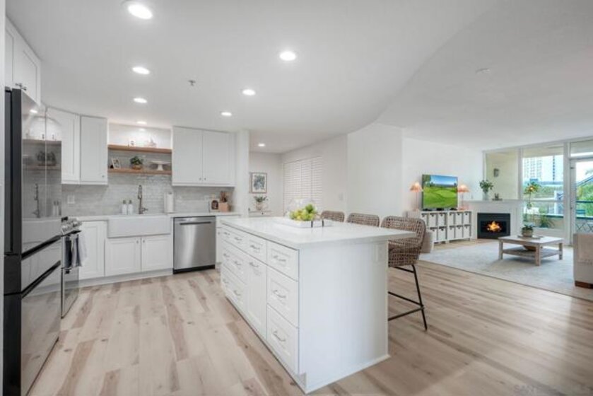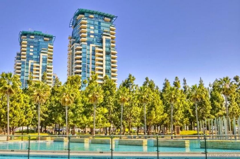 Sky and city views greet you in this beautifully updated home located in the esteemed Horizons South Tower, with floor-to-ceiling windows and a quiet location overlooking courtyard waterfall with lush tropical landscaping. This corner home perfectly blends resort-style living with a vibrant Marina District location. The modern oasis begins when you enter the open floor plan accented by stunning light oak floors, with west-facing sunset views above the renowned architecture of the New Children’s Museum . The meticulously updated kitchen is thoughtfully designed with an oversized custom island and cabinetry, apron sink, high-end stainless-steel appliances including a 5-burner double oven gas range with Wi-Fi and True Convection, and refrigerator with beverage center and dual ice maker. Owner paid EV charger at deeded parking space conveys to buyer! The gorgeous high-end natural finishes and tasteful design continue the oasis ambience of Horizons throughout the home. The primary suite, which includes a large bathroom with soaking tub and second private balcony, overlooks the newly renovated community pool, spa, and BBQ area. The community centerpiece waterfall feature provides a relaxing acoustic backdrop, enhancing your home’s peaceful ambiance. Dual-paned windows, top down-bottom up shades, and a cozy living room fireplace ensure privacy and an intimate living experience, with access to all of the highly-sought after amenities at Horizons. Parking is a breeze for both you and your guests with an EverCharge EV charging station personally dedicated to your parking space, and underground gated parking for your guests. The fitness center, pool/spa and BBQ areas, Billiards room, community room, and elegantly updated lobbies provide plenty of activities and neighbor interactions. Conveniently located in the heart of Marina District, simply step outside into the San Diego Children’s Park to enjoy the year-round coveted weather. Professionally managed by FirstService Residential with 24-hour security and video surveillance, full-time concierge service, and even bicycle storage, you can enjoy your peaceful retreat supported by a community that prioritizes comfort, security, and care. Welcome home to Horizons 305 South