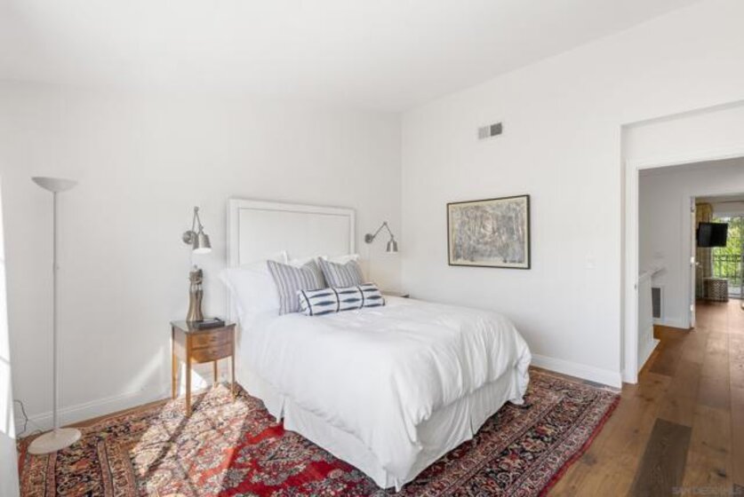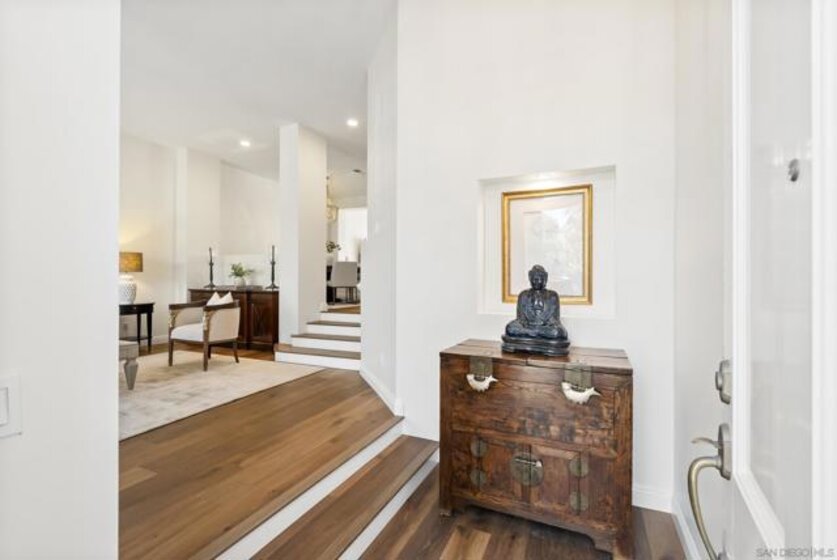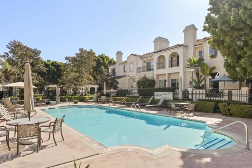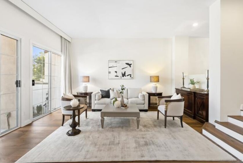 Tucked within the elegant, gated community of La Florentine at Renaissance, this refined townhome offers a quiet, upscale lifestyle. Inside, a spacious and open floor plan is elevated by high ceilings and hardwood oak floors throughout. The kitchen is designed for both everyday living and entertaining, featuring custom white cabinetry with embedded drawers, quartz countertops, a large island, Thermador appliances, and a wine refrigerator. Thoughtful upgrades include recessed lighting, an alarm system, tile fireplace, custom curtains, and a full house water filtration system. Just outside, a generous front patio with slate flooring provides the perfect setting for barbecuing, dining Al Fresco, or a morning coffee. The primary suite is a true retreat with a large walk-in closet, private balcony, and a spa inspired bathroom that includes a soaking tub and shower behind a large frameless glass wall and marble flooring. Additional highlights include an oversized two car garage with storage on the lower level, as well as access to community amenities including a pool and hot tub. Set in the heart of UTC, this beautiful Italian style village offers a rare blend of privacy, high end living and everyday convenience. Residents are moments from a multitude of restaurants, the UTC shopping mall, nearby parks, walking trails, and everyday essentials. The location also provides close proximity to beaches, UCSD, and highly rated San Diego Unified schools.