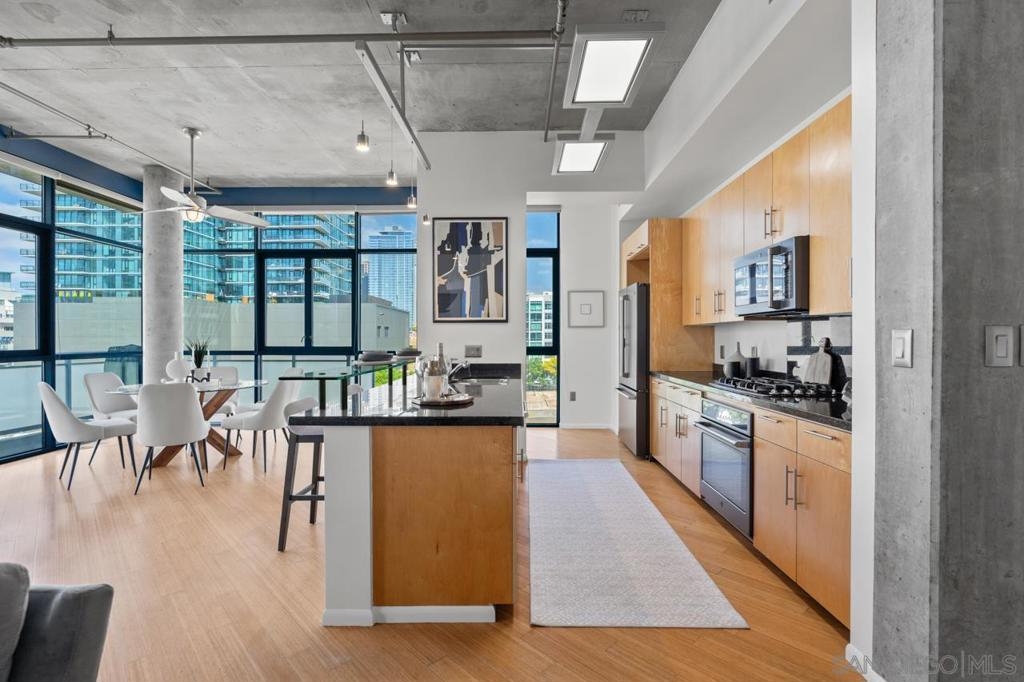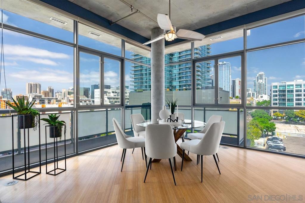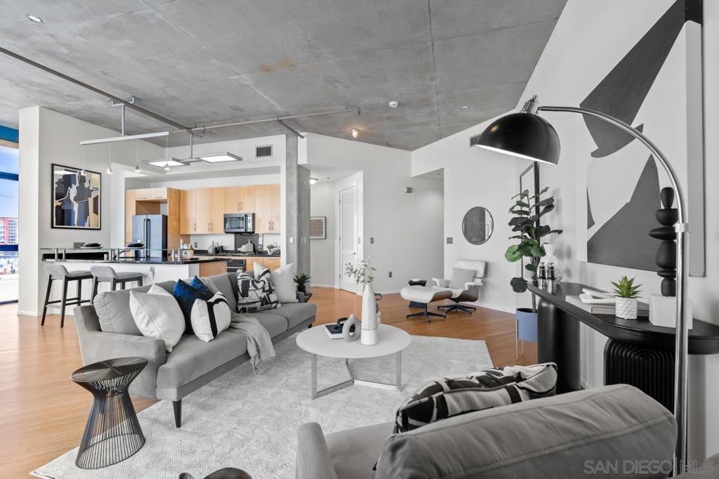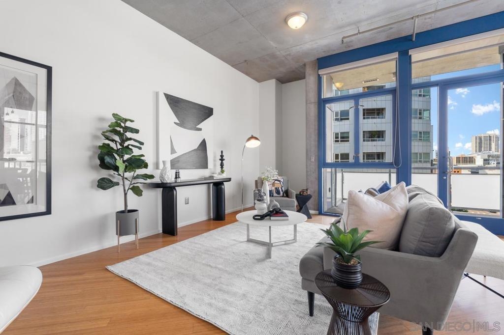 Rare corner unit with a wrap around patio in the highly desirable M2i building, located in East Village! Designed with an industrial flair, this unit features 11 foot ceilings and stunning floor-to-ceiling windows that flood the space with natural light all day long. With the potential to add an additional bedroom and the open layout, unit 503 offers flexibility for any buyer. Additional highlights include tandem parking, conveniently located on the 1st level, and a large storage unit. Residents of M2i enjoy access to a fully equipped remodeled gym, two lobbies, luscious courtyard, and a rooftop patio complete with a firepit, and BBQs. Don’t miss your chance to own this unique home in the heart of Downtown San Diego!