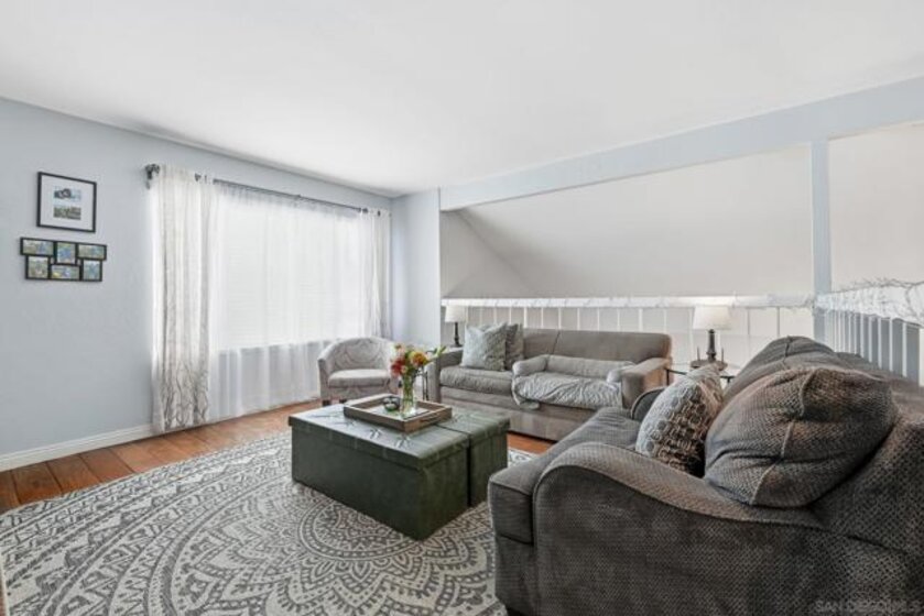Welcome to your light-filled Tierrasanta retreat! This upgraded, south-facing home blends comfort, style, and location with vaulted ceilings, new dual-pane windows, and a freshly renovated kitchen that feels straight out of a design magazine. The open layout flows effortlessly for entertaining or quiet nights in. Two bedrooms downstairs and one upstairs create a flexible setup for families, guests, or anyone needing space. The large loft adds even more options—perfect for a home office, playroom, gym, or easily converted into a fourth bedroom. Step outside and unwind on your private patio—ideal for morning coffee, weekend BBQs, or cozy nights making s’mores around the fire pit. Sunlight pours through every corner thanks to its ideal southern exposure, creating an airy, inviting vibe throughout the day. You’ll love being minutes from everything—shopping, dining, highly rated schools, freeway access, and Tierrasanta’s scenic hiking and biking trails. Whether you’re starting a new chapter or simply ready for a home that feels like you, this one checks all the boxes. Don’t miss this rare blend of comfort, convenience, and California living at its best!