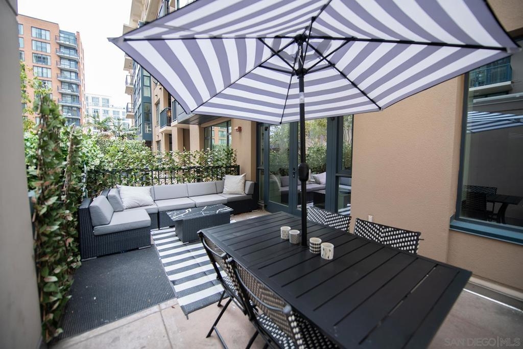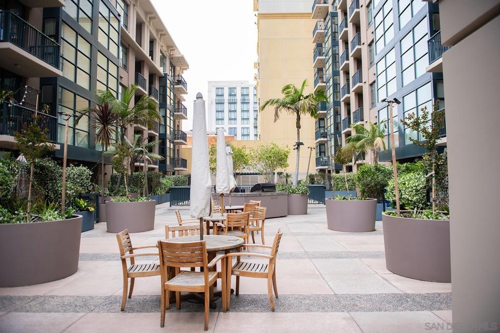Location, location and location!!! Welcome to Trellis 5th Avenue in San Diego's Gaslamp Quarter. Its central location offers proximity to vibrant nightlife, diverse dining options, entertainment venues and historic architecture. Being just two blocks away from Petco Park, it's an ideal location for Padres fans. This condo has been renovated and is ready for a stylish owner to adds to its appeal. Additionally, facing the community courtyard allows for a quieter living environment, shielded from the city atmosphere. Wow!! This condo has all that you need AND in an unbeatable location!! Public transportation is merely blocks away. Are you a padres fan? Just imagine... How cool would it be if you lived only 2 blocks away from the world famous Petco Park!? The condo has been extensively renovated. Completely remodeled in 2021, renovations included: painted walls and ceilings, new baseboards, new doorframes, new lighting fixtures, all new flooring throughout, new shower and tub along with fixtures (tile and doors included), new bathroom vanity, new bathroom exhaust fan, all new appliances, and completely remodeled kitchen. Don't miss out on this opportunity! The unit comes with a very generous patio. Complex amenities include: a gym, an interior courtyard outfitted with bbq grills, and nightly security guard.