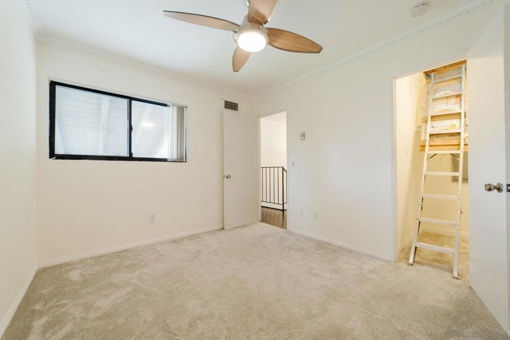 Spacious Corner Unit Townhome in Oak Park! This charming 2-bedroom, 1.5-bathroom townhome offers a perfect blend of comfort, convenience, and community. The front patio extends your living space—perfect for relaxing, grilling, or extra storage. Inside, the bright and airy living room features a large window that fills the space with natural light. The two-story layout provides great separation, with laundry hook-ups and bedrooms upstairs and the kitchen, dining, and family room downstairs. A rare oversized attic offers incredible flexibility—use it as a home office, playroom, or extra storage. Enjoy the prime corner location with a grassy area in front and beautiful trees, creating a peaceful setting. The community features ample guest parking and a swimming pool for summer relaxation. The home also includes a carport with tandem parking for convenience. Centrally located in San Diego, this home is close to shopping, dining, and easy freeway access - about 15 minutes from everything central San Diego. A must-see opportunity for homeowners and investors alike!
