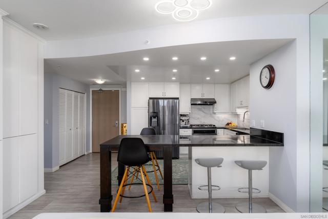 Located in Horizons NORTH Tower, in the heart of the Marina District, this bright south-facing unit is filled with abundant natural light and offers open-sky views with minimal obstructions. Beautifully updated, it features new flooring along with a modern kitchen and baths. The kitchen remodel included relocating the island to create a more open-concept layout, complemented by upgraded finishes and ample storage. Step outside to an expansive 250 sq. ft. entertaining deck, ideal for relaxing, dining, or hosting friends. Resort-style amenities include a pool, spa, fitness center, concierge, security, billiard and conference rooms, and guest parking. Just steps from the scenic Martin Luther King Jr. Promenade and Seaport Village, with an array of retailers at your doorstep and walking distance to top-rated restaurants, shopping, and a 24-hour Ralphs Market. Located in Horizons, in the heart of the Marina District, this bright south-facing unit is filled with abundant natural light and offers open-sky views with minimal obstructions. Beautifully updated, it features new flooring along with a modern kitchen and baths. The kitchen remodel included relocating the island to create a more open-concept layout, complemented by upgraded finishes and ample storage. Step outside to an expansive 250 sq. ft. entertaining deck, ideal for relaxing, dining, or hosting friends. Resort-style amenities include a pool, spa, fitness center, concierge, security, billiard and conference rooms, and guest parking. Just steps from the scenic Martin Luther King Jr. Promenade and Seaport Village, with an array of retailers at your doorstep and walking distance to top-rated restaurants, shopping, and a 24-hour Ralphs Market.