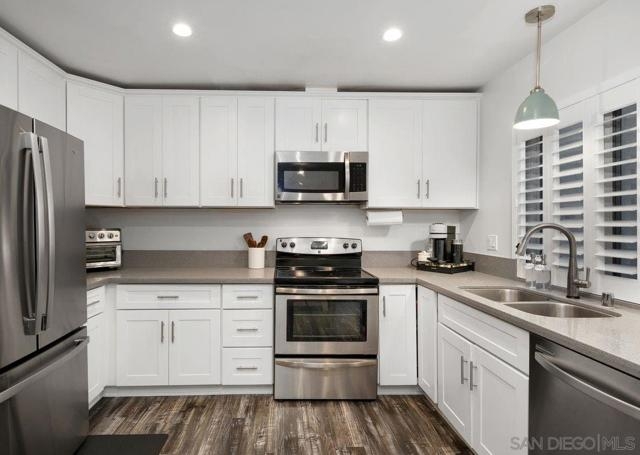An opportunity to own a rare 4BD/2.5BA, 1,386 sqft townhouse ideally located in Clairemont. Beautifully remodeled several years ago, this home has been further enhanced by the current owners with a new HVAC system, plantation shutters, blackout curtains in the primary suite, and recessed lighting in the kitchen. Enjoy the private courtyard between the kitchen and spacious 2-car garage, perfect for entertaining or relaxing evenings. The community offers a pool, spa, and lush greenbelt throughout... see supplement. Conveniently situated near freeways, restaurants, and shopping for easy access to everything San Diego offers.