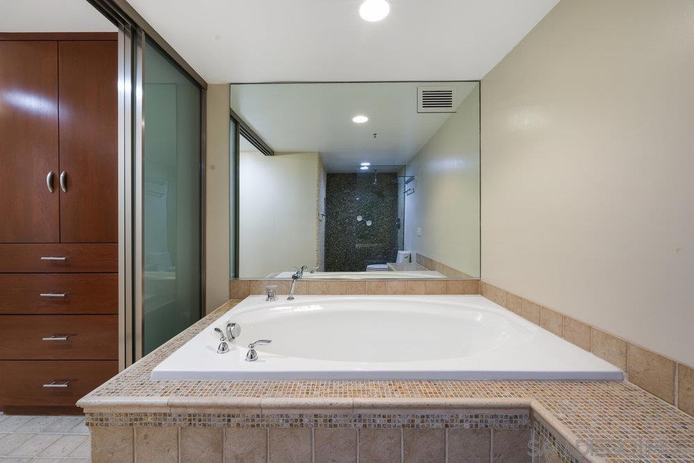 Don't miss this rare opportunity to own a private ground floor corner unit that is also the largest 3 bedroom floorplan at Presidio Place. This gorgeous home has abundant light from all of the windows, a beautiful open floorplan with upgraded kitchen - including a double oven and granite countertops! Pergola flooring throughout this home leads you through a dining room and large family room with sliding doors to a wrap around patio and even a lawn! In the family room you'll find a beautiful wet bar and fireplace. As you make your way down the hall you'll find updated hall bathroom and bedrooms with built in closet organizers. At the end of the hall you'll find the spectacular primary suite. Stunning wood cabinets and large walk in closet with built in organizers boast an abundance of storage. The updated primary bathroom make this a spa experience with a soaking tub and custom tiled separate walk-in shower. This home also comes with 2 assigned parking spots directly across from the elevator and is located steps across from the elevator on the 1st floor.....All of this in the heart of San Diego minutes away from dining, entertainment, shopping, beaches and even the airport. Presidio Place boasts 24/7 security with guard on-site, a heated pool you can use year-round and discount membership to state of the art gym at the YMCA (Did someone say Pickleball??). Also included in the HOA fee is your gas, water, trash, and sewage. This truly is a rare opportunity to live near everything but be in your own your quiet private oasis.