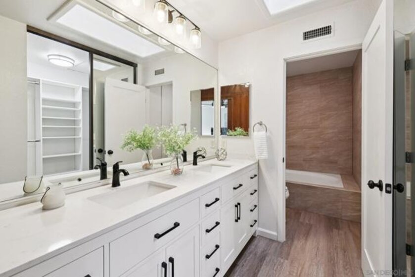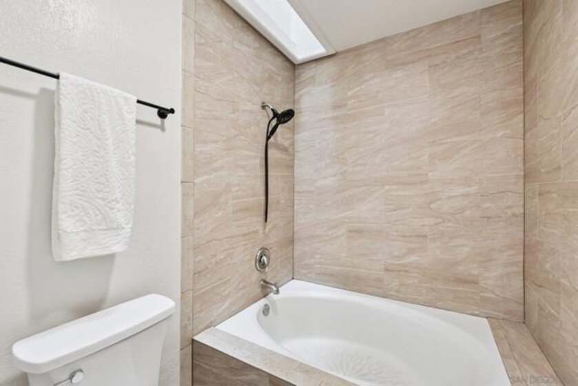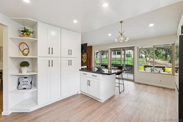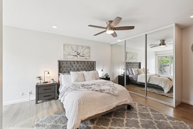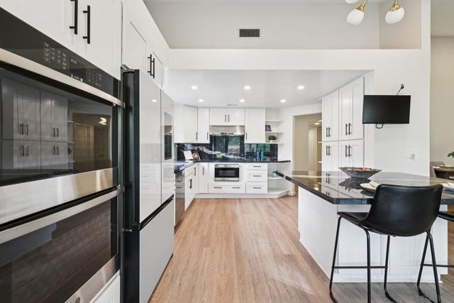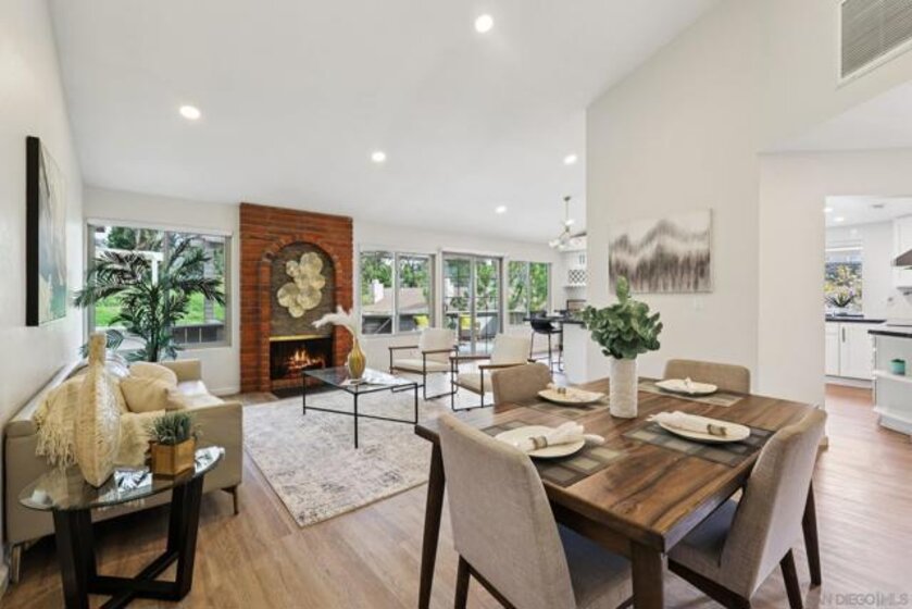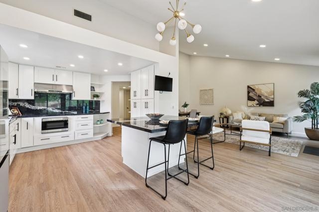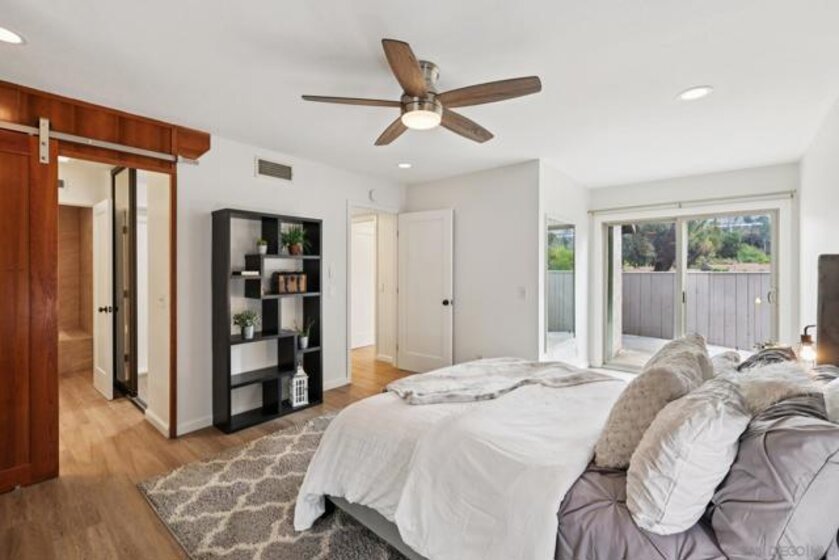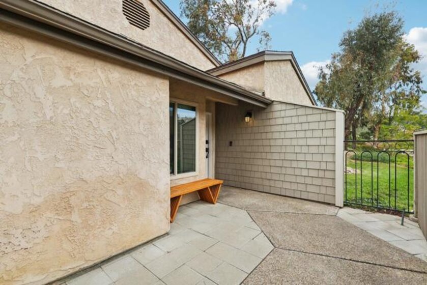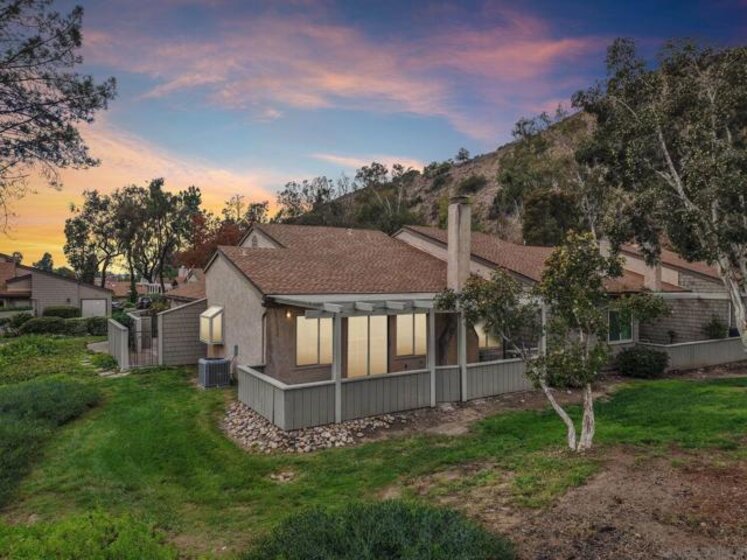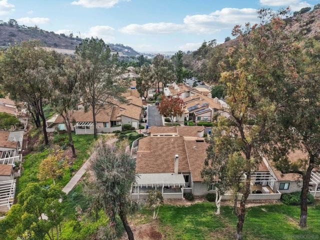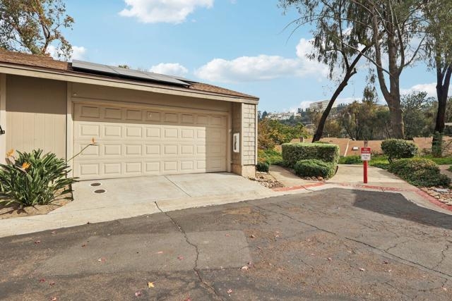 RARE CORNER UNIT SINGLE STORY HOME IN SMOKE TREE COMMUNITY * BEAUTIFULLY UPGRADED * MOUNTAIN AND SDSU VIEW * PAID OFF 15 PANEL SOLAR SYSTEM EV READY * 3 PATIOS AREA * 2 CAR GARAGE! Welcome to this rare single-story corner unit in the highly desirable Smoke Tree community, offering privacy, style, and effortless indoor-outdoor living. This beautifully updated three-bedroom, two-bath home features three separate patio areas, perfect for relaxing, gardening, or entertaining while enjoying a park-like setting with open mountain and SDSU views. The house is equipped with a paid-off 15-panel Baker Electric solar system and an EV-ready outlet, ensuring low energy costs and high convenience. Step inside to a bright, open layout with vaulted ceilings, recessed LED lighting, and custom motorized LEVOLOR window treatments in the living room. The living room features a cozy fireplace and seamless flow to the large patio with amazing views. The kitchen is a true showstopper, designed for the home chef, with a large center island, white shaker cabinetry, luxurious natural quartzite countertops, deep stainless steel sink, pull-out storage, and high-end stainless steel smart appliances, including a touchscreen LG refrigerator, induction cooktop, wine fridge, double ovens, and built-in microwave. The primary suite offers its own private patio, a walk-in closet, a barn-style door entry to the bathroom, a beautifully upgraded double sink vanity, and a soaking tub/shower combination. The secondary bathroom has been thoughtfully designed with custom finishes, imported fixtures, gold finishing, stunning wallpaper, and a walk-in glass shower with custom tile and a high-glass door. Additional features include newer windows, central HVAC with newer ductwork and insulation, a whole-house fan, a Nest smart thermostat, a Ring doorbell, upgraded doors with bronze hardware, and three ceiling fans. The attached two-car garage features laundry hookups with a washer and dryer (Kenmore Elite), ample storage space, and direct access to the patio and front door. The Smoke Tree community offers a resort-like pool, spa, and lush, park-like grounds, creating a serene environment while remaining close to everything. Just minutes from great hiking, SDSU, and the 8 freeway, a quick drive to downtown and San Diego's finest beaches.