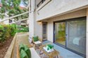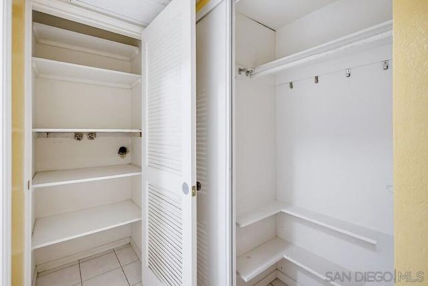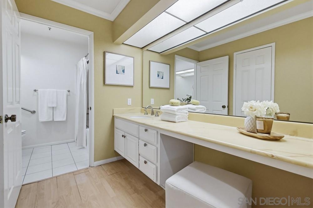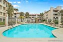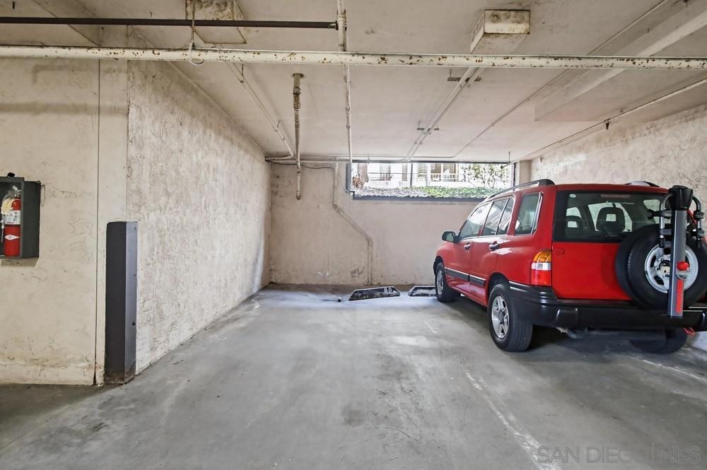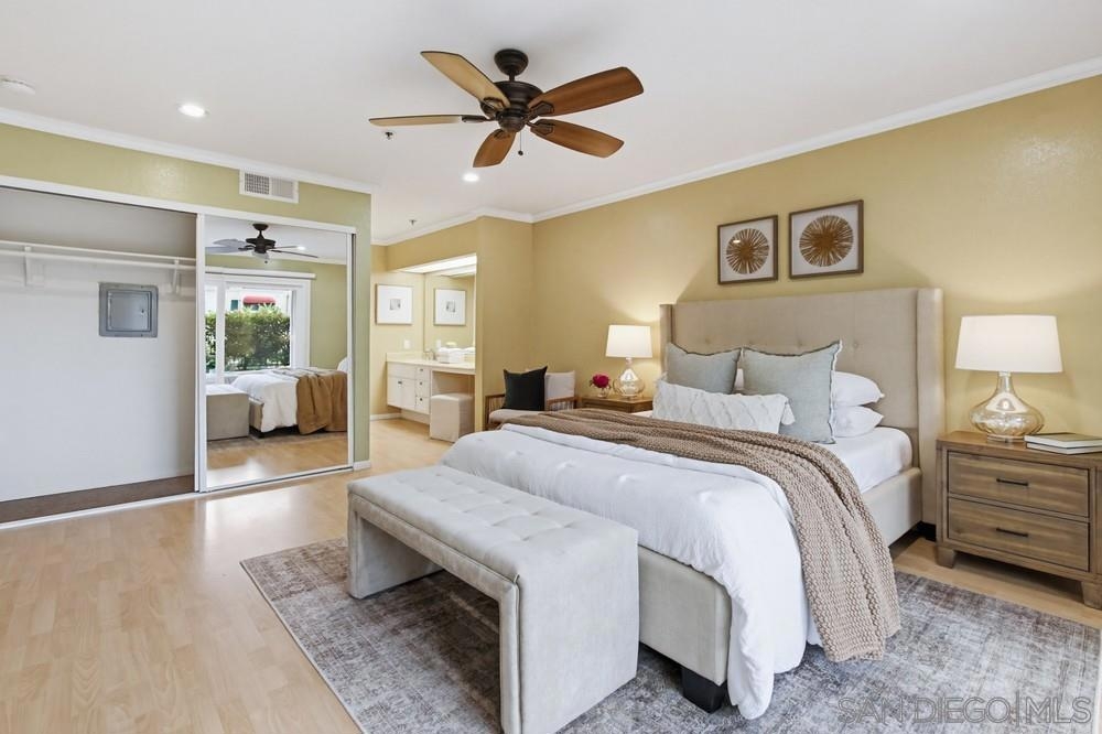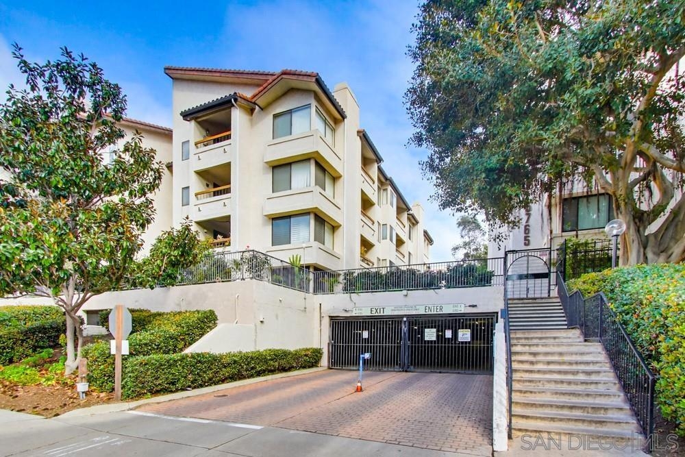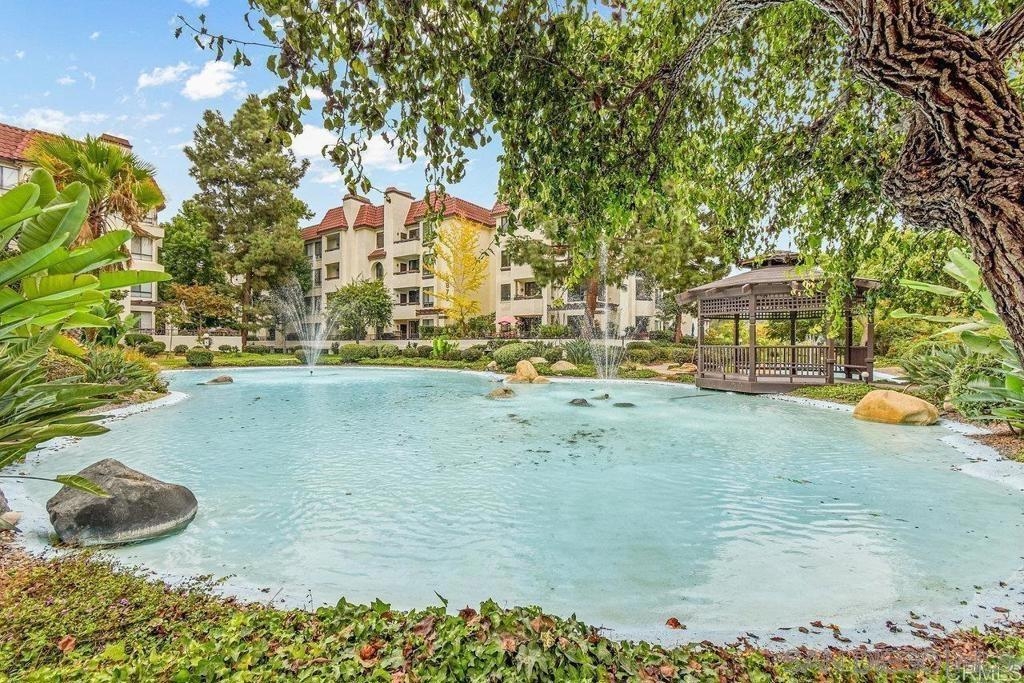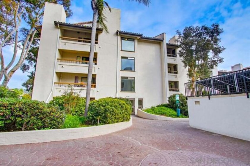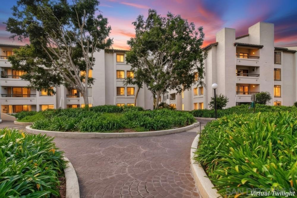 Lush garden end unit location in Presidio Place! This 1st floor one bedroom condo is the larger floorplan at 854 sq ft & features the additional half bathroom. Corner unit that provides extra privacy & a wrap around garden for peaceful views from all the windows. Large living room with space for a dining table, a fireplace & direct access to the patio. The bedroom has a slider to the patio & large vanity space/sink with an additional sink/vanity inside the main bath area. The open kitchen has lots of storage & a breakfast bar. Upgrades include: newer dual pane vinyl windows/slider with blinds, new refrigerator, dishwasher & range oven in 2025, updated HVAC system, ceiling fans, & LED lighting. Next to the half bath at the entry is a large storage closet & an additional closet with laundry hookups for your own private in unit washer/dryer. Back patio wraps all the way around the side of the unit, sits up from the street & has additional storage cabinets. Gated community garage with 1 assigned parking space for the unit. Presidio Place has all the amenities for resort style living: multiple pools, hot tubs, sunning decks, racquetball, tennis, pickleball, on site security, guest parking, walking paths, green spaces, water features & more. Very convenient central location in San Diego…short drive to Mission Bay, University of San Diego, Mission Valley & Fashion Valley shopping or Downtown. New Riverwalk project coming soon nearby!