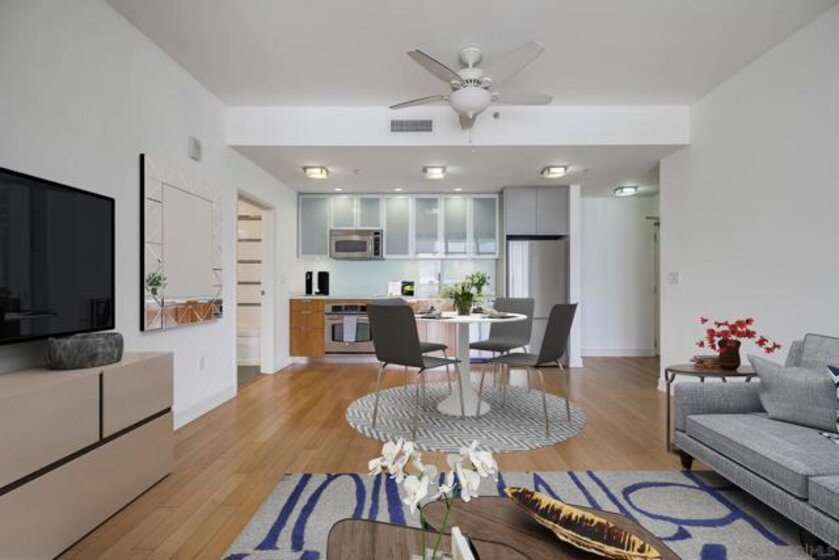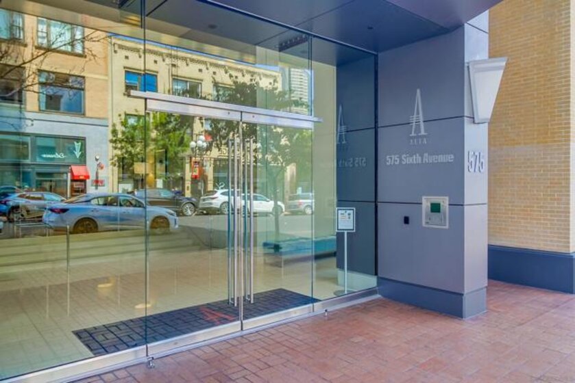 Sleek & Sophisticated High-Floor Style + Price Drop! Live sky-high at Alta. FULL-SERVICE BUILDING...RESORT-STYLE LIVING...1BD/1BA near Petco Park & Gaslamp nightlife. Soaring ceilings, floor-to-ceiling windows, engineered wood floors, quartz counters, stainless appliances, designer finishes. Walk-in closet + frosted barn door, balcony city views, secure parking, storage + luxe amenities: pool, spa, gym, lounge + guest parking. *some images are virtually staged* Live stylishly high floor luxury condo at 575 Sixth Ave #1011 in the iconic Alta tower, located in the Gaslamp Quarter near Petco Park. This chic 1-bed, 1-bath condo features high ceilings, floor-to-ceiling windows, and engineered wood flooring. The modern kitchen is outfitted with stainless steel appliances, quartz countertops, glass paneled cabinets and designer finishes. The light-filled bedroom includes a spacious walk-in closet and a sleek frosted glass barn door for privacy with style. Step onto your private balcony to take in stunning city views. Includes secured parking and storage. Alta offers resort-style amenities: pool, spa, gym, community lounge and guest parking. *SOME IMAGES ARE VIRTUALLY STAGED*