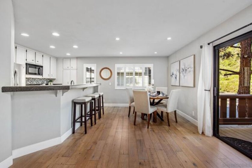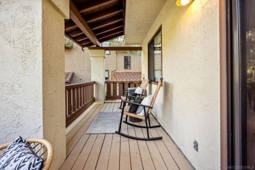 Welcome to 5970 Mission Center Road in the desirable Hye Park community — a thoughtfully updated end unit townhome offering one of the most functional layouts in the complex and a rare list of upgrades you won’t find in other available units. Only two units in the building this townhome lives like a home. One of the most important improvements? The entire home has been fully repiped with copper plumbing, eliminating the original polybutylene plumbing still found in many neighboring units — a major upgrade that offers peace of mind and long-term value. The plumbing comes with a 15 year warranty transferable to the new buyer. The home features a bright, open main level designed for easy indoor-outdoor living. The kitchen flows seamlessly into the living and dining spaces and opens to an oversized, covered and uncovered private deck — a standout feature in the community. Unlike many units, this deck is fully private and not shared, creating the perfect space for entertaining, relaxing, or dining outside year-round. Upstairs you'll find two spacious bedrooms, each with an en-suite bathroom, and large enough to comfortably incorporate a home office or flex workspace. The smart layout keeps living areas separate from sleeping quarters while maximizing usable space throughout the home. The real hardwood floors throughout give an elevated feel. Additional highlights include an attached two-car garage with a large extra storage area, plus plentiful guest parking nearby, making hosting friends and family easy. Ideally positioned within the community, the home enjoys a convenient location with less units and more available guest parking. Residents of Hye Park enjoy access to amenities including a pool and spa, with HOA dues covering water, pool, and common area maintenance. Families will also appreciate that the home is located within the boundaries for highly rated Nipaquay Elementary School, the area’s newest school. Perhaps the best part of the location is the proximity to Civita — just a short walk away from its parks, restaurants, coffee shops, and community events — allowing you to enjoy everything Civita has to offer without the Civita price tag or congestion. A rare combination of upgrades, privacy, layout, and location makes this home stand out among the others currently available in the community.