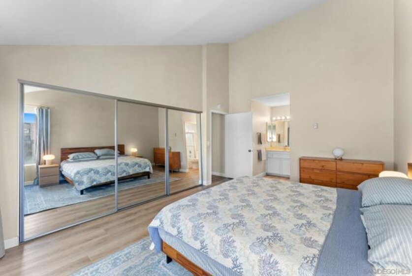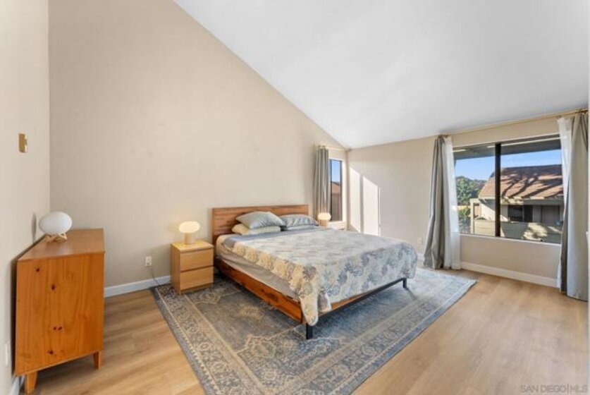 Beautifully updated top-floor end unit featuring 2 bedrooms and 1.5 baths in a peaceful, well-located community. Positioned near Agee Street for convenient guest parking, this light-filled home offers vaulted ceilings that create an open, spacious feel. The kitchen has been tastefully remodeled, and the living room opens to a private balcony perfect for relaxing or entertaining. Enjoy access to a gated community pool and shared laundry facilities. The home also includes a one-car garage and an assigned parking spot. Ideally situated close to UCSD, UTC Mall, major freeways, and the beach. An excellent opportunity to own in a highly desirable area.