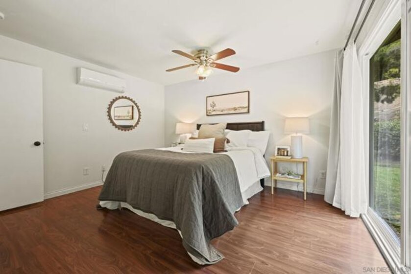 THE ONE THAT CHECKS ALL THE BOXES! This bright end-unit townhome checks all the boxes, FHA & VA approved, private setting, and gorgeous open views. Enjoy rare greenbelt privacy with no neighbors behind you, a feature that truly sets this home apart in Friars Village! Unlike most units with two shared walls, this one shares only a single wall, offering an exceptional sense of space and quiet. Inside, the 2 bed / 1 bath layout feels airy and inviting with dual-pane windows and sliders (updated within the last 5–6 years) and three energy-efficient mini-splits providing year-round comfort. The open-concept living area flows seamlessly to a private view patio, perfect for relaxing or entertaining with serene greenery as your backdrop. Practical perks include in-unit laundry, an attached two-car garage with direct access, and a low-maintenance lifestyle ideal for busy professionals, students, or first-time buyers. Community amenities feature a pool, spa, clubhouse, BBQ areas, and playground, all in a prime Mission Valley location just minutes from USD, Fashion Valley, Mission Bay, and Downtown, low-maintenance living with unmatched privacy, comfort, and convenience that truly stands out from the rest. Seller-reported updates include a new electrical panel (2025), new garbage disposal, added kitchen backsplash, new kitchen faucet, a painted bathroom vanity with new hardware, new bathroom light fixtures, a new medicine-cabinet mirror, new hallway light fixtures, storage racks installed in the crawl space, and a wooden surf rack in the garage.
