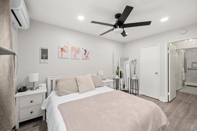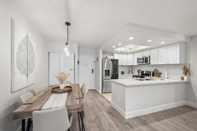 Enjoy this wonderfully updated, 1 bedroom, 1 bathroom condo in Mission Valley. This quiet community offers this ground floor, recently updated unit with an open floor plan and modern day upgrades. The kitchen comes with stainless appliances and plenty of counter space. A walk in shower highlights the homes bathroom, including other modern perks. The generously sized bedroom has plenty of space to live and move. Morning sun shines into the living area with views facing inward the complex and updated air conditioning makes climate control easy. This unit is located near its designated parking spot. Come have a look!