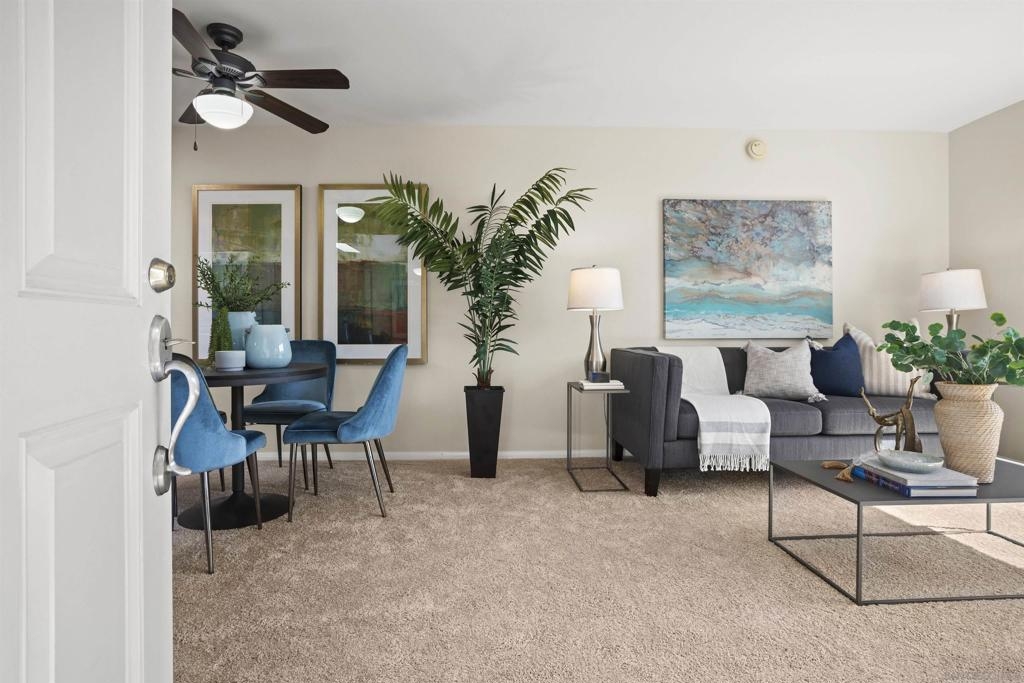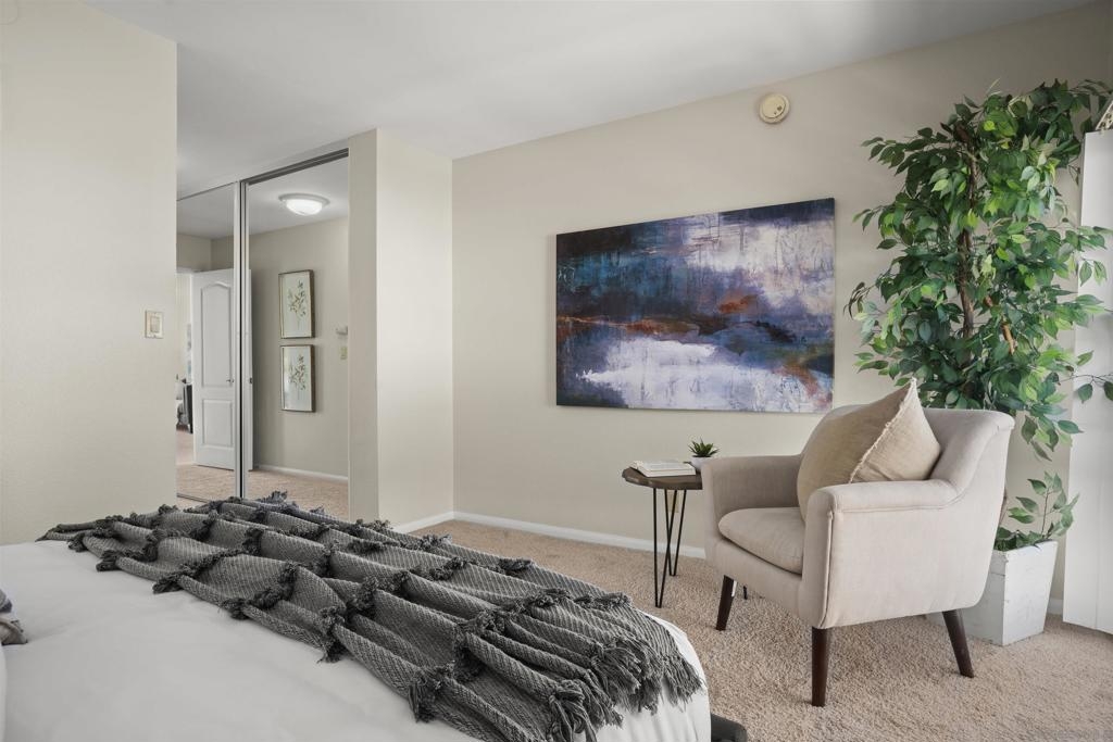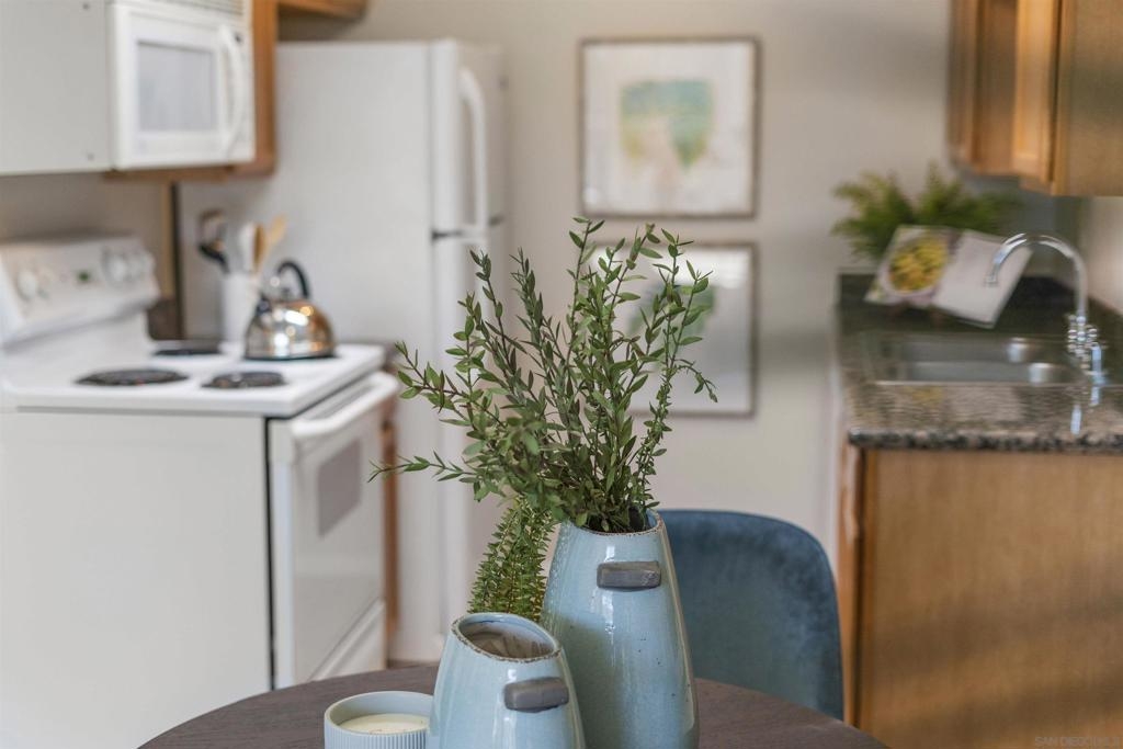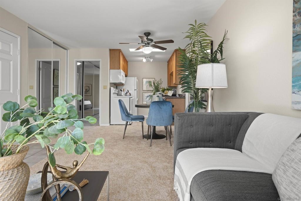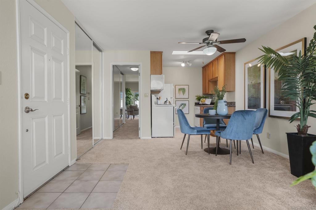 Light, bright & airy! This terrific top floor unit is located in the heart of Clairemont close to shopping, schools & just a short drive to the beach. The unit features a wonderful open concept layout, vinyl windows, fresh paint & new carpet. The kitchen boasts maple cabinets with granite counter tops. Tons of natural light streams into the unit from both the newer skylight above the kitchen & the large vinyl slider that leads to the balcony. The complex has a well maintained exercise room & a terrific pool. Welcome home!
