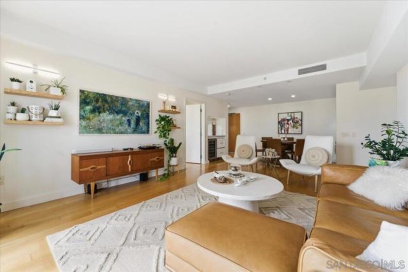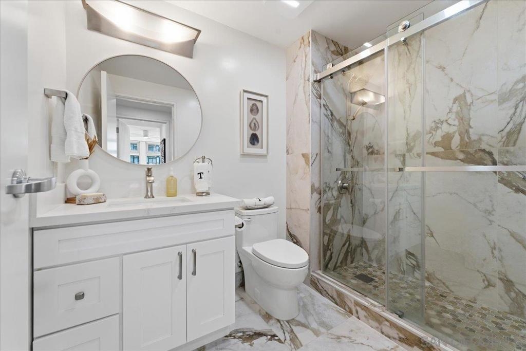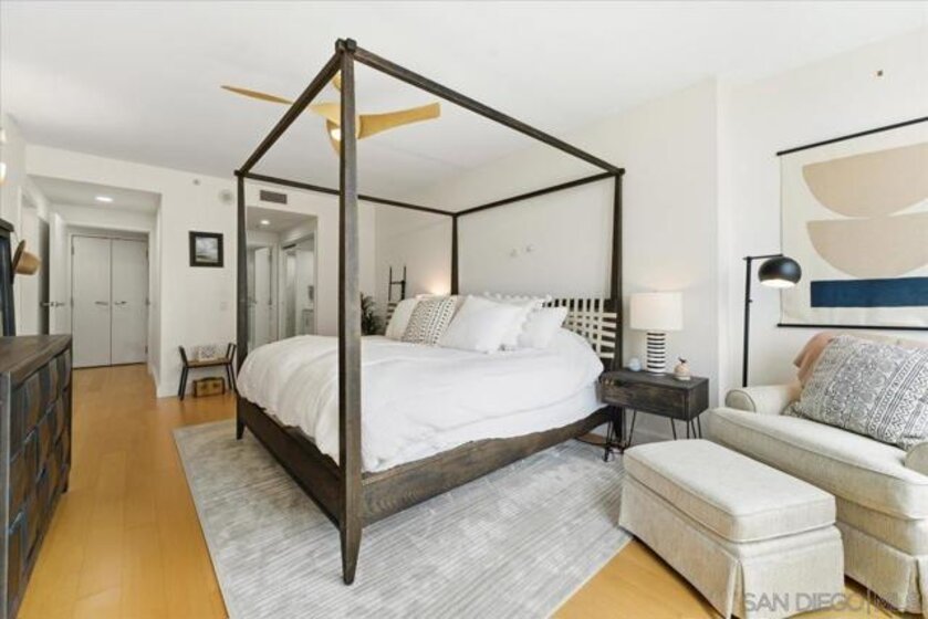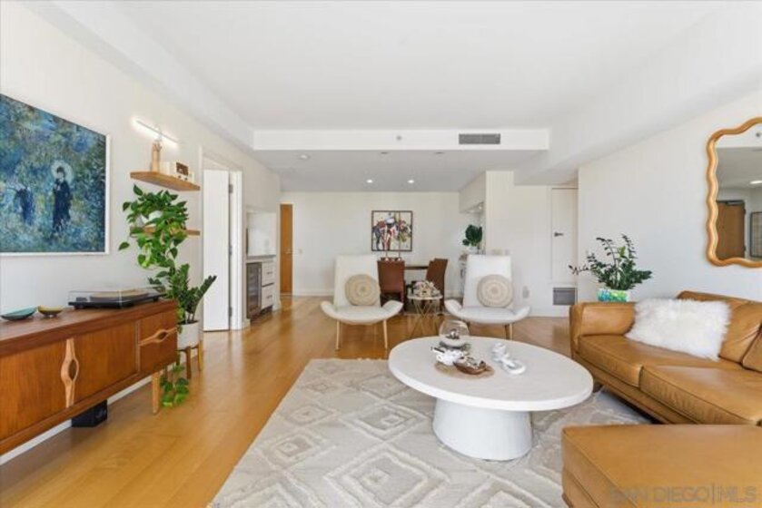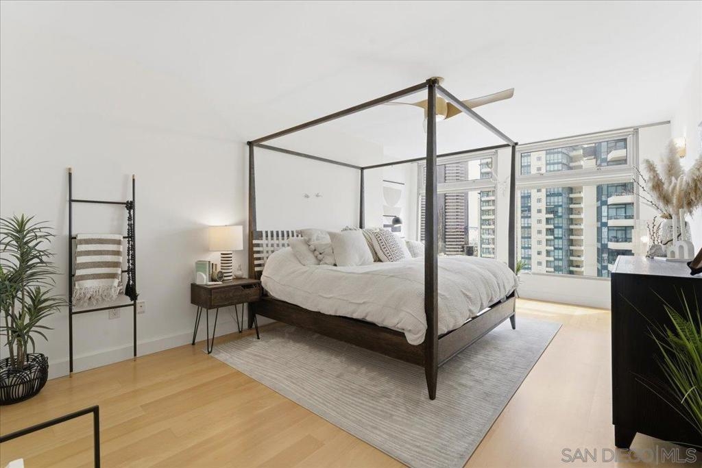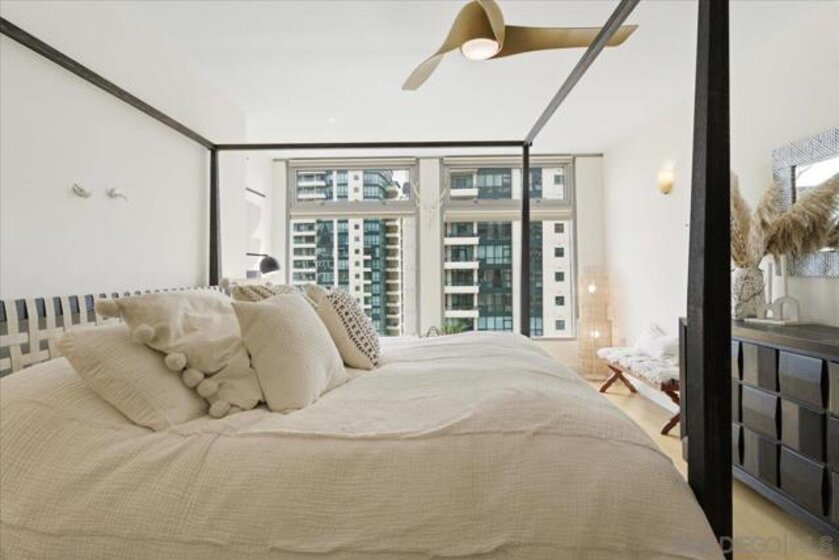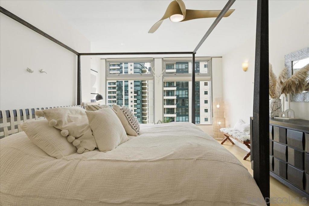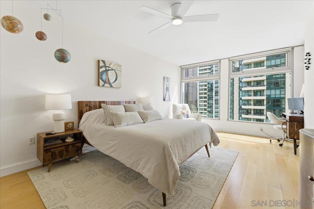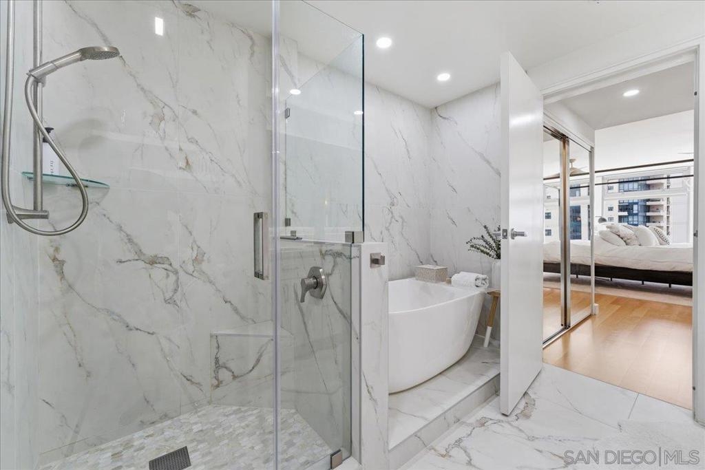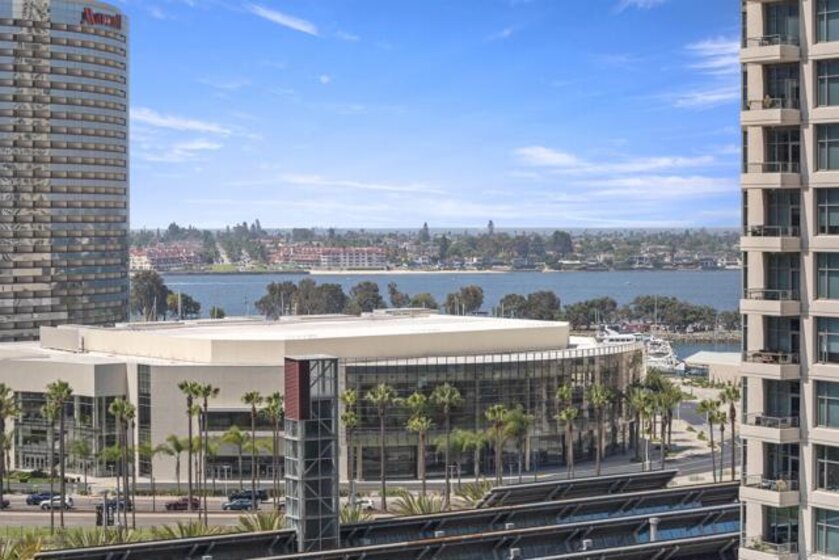 Experience elevated urban luxury in the heart of Downtown San Diego’s prestigious Marina District at the highly sought-after Renaissance – South Tower. This impeccably remodeled 12th-floor residence offers a rare 3-bedroom, 3-bath floor plan with water views and expansive floor-to-ceiling windows. The completely reimagined chef’s kitchen is a true showpiece, featuring rare natural granite countertops, a paneled Bosch dishwasher, paneled Sub-Zero refrigerator, and a professional-grade Hestan range. Entertain effortlessly with a custom bar area complete with Perlick double-drawer refrigerator and wine fridge. Refined upgrades continue throughout with rich maple hardwood flooring, a Samsung Frame TV paired with surround sound. Balcony perfect for indoor-outdoor living. The luxurious primary suite offers a spa-inspired retreat with a freestanding soaking tub, expanded walk-in shower, custom cabinetry, and designer fixtures. The junior suite and third bathroom have been thoughtfully remodeled with custom walk-in showers, modern vanities, premium finishes, and striking 24x48 porcelain slab tile. Additional highlights include two premium parking spaces (one extra-wide and one wide with easy access) and an oversized private storage locker with bonus space—among the largest available in the building. This is a rare opportunity to own a fully upgraded residence in one of Downtown San Diego’s most desirable luxury high-rises, just moments from the waterfront A Statement of Luxury in the Marina District. Perched high on the 12th floor of Renaissance’s coveted South Tower, this rare 3-bedroom, 3-bath masterpiece sets a new standard for downtown living. Walls of glass frame sweeping water views, flooding the home with natural light and blurring the line between cosmopolitan energy and private retreat. Completely reimagined kitchen with expanded counters draped in rare natural granite, a Bosch paneled dishwasher, Sub-Zero paneled refrigerator, and a Hestan professional power range. A custom bar with Perlick double-drawer fridge and wine fridge elevates every gathering. Maple hardwood floors lead you through spacious living areas designed for both entertaining and everyday elegance, enhanced by a Samsung Frame TV with surround sound and an exterior deck finished in maple LVP flooring. The Primary Suite is a spa-like sanctuary, boasting a freestanding soaking tub, expanded shower, custom cabinetry, and designer fixtures. The Junior Suite and third bath echo the same level of sophistication with sleek custom showers, new vanities, premium fixtures, and dramatic 24x48 porcelain slab tile. Every detail speaks of convenience and exclusivity: two prime parking spaces (one extra-wide, one wide—both with easy access) and a massive storage locker with bonus space, unmatched in the building. This is more than a home, it’s a statement!
