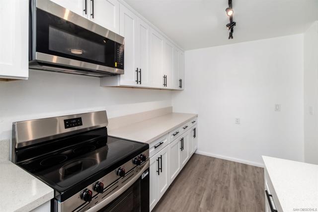 Fully remodeled Turnkey Condo. Everything is brand new! Located in the Desirable College Area! Beautifully updated corner unit on the second floor with no one above you. This light-filled home features brand new stainless steel appliances, quartz countertops in the kitchen and bath, dual-pane windows throughout, new lighting, wall A/C and heat, and luxury vinyl plank flooring. Enjoy the convenient location directly across from the Joan Kroc Center — open to the public with pool, gym, ice skating, pickleball, and basketball courts available by day pass. Walk to shopping, dining, and public transportation. Just 3 miles to SDSU!