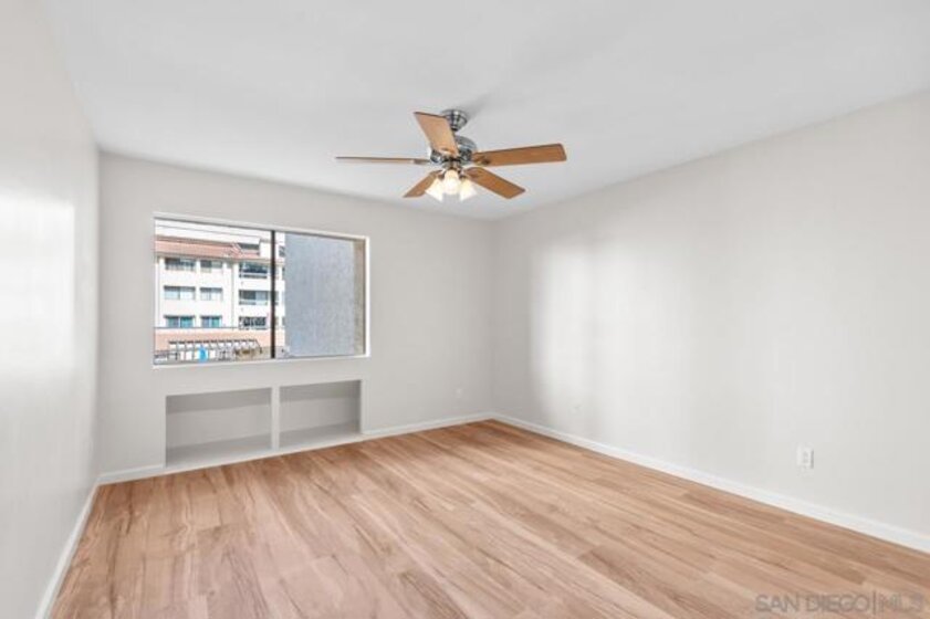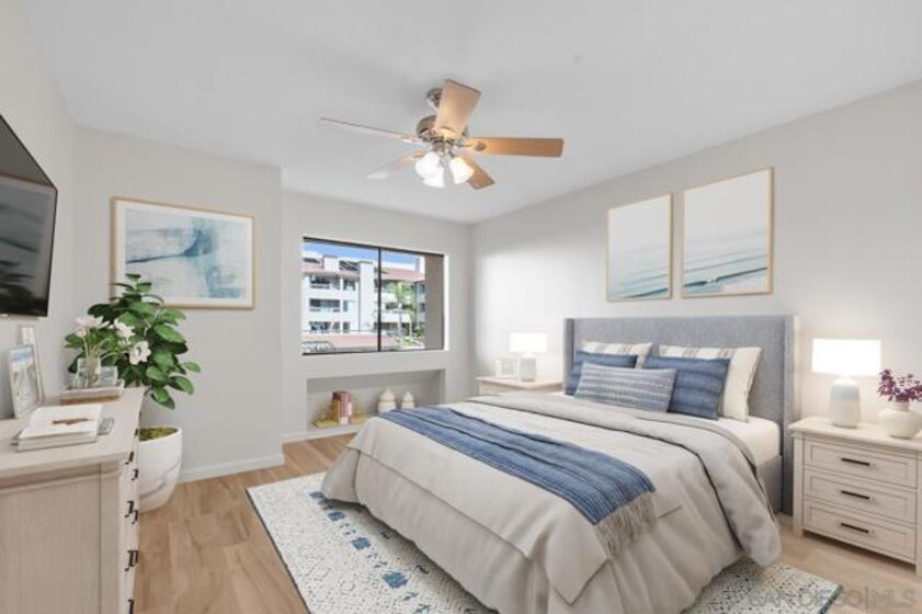 Welcome to Mission Greens, where comfort and convenience meet in the heart of Mission Valley. This recently remodeled home has a fresh, inviting feel from the moment you walk in. The new Lifeproof Bailey's Beach Oak flooring and paint give it a modern touch, while ambient lighting and a gas fireplace add just the right amount of warmth and character. The kitchen is all set for everyday life—with new stainless steel appliances, a wine fridge, and plenty of space to cook or hang out. The new buyer will enjoy the close proximity to Fashion Valley, trolley, beaches, parks, more! Property may be VA approved. The rooms are spacious and full of little details that make a difference, like ceiling fans, cozy nooks in the bedrooms, two separate closets in the primary suite, and laundry plumbing inside the unit itself. The outside balcony feels like extra living space with easy access to the Mission Greens pool, spa, and fitness room.