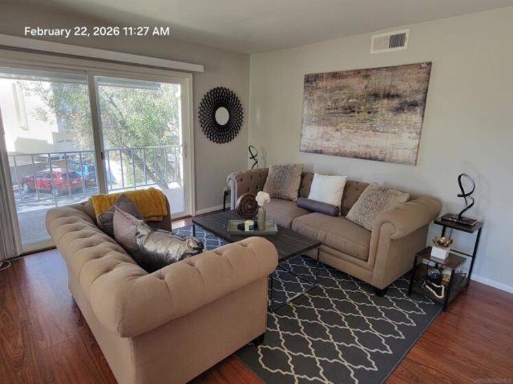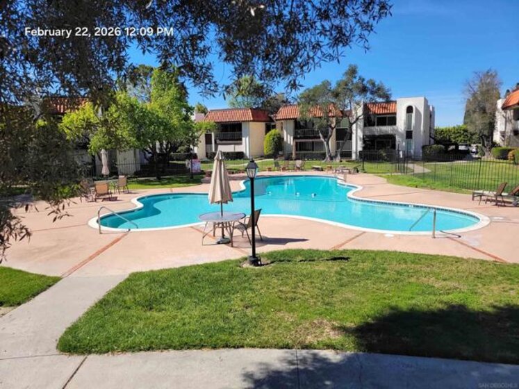 Welcome to this bright, top-floor, corner unit in the highly desirable Casa Del Cerro complex. This 2 Bedroom, 1 Bathroom condo offers 836 Sq Ft of well-planned living space with a functional open layout and a clean, modern feel. The kitchen features granite countertops, upgraded tile floors, stainless steel appliances and a pass-through window providing easy access to a large covered porch for seamless entertaining. A large secure storage closet is also located on the balcony for added convenience. This second floor unit, provides extra privacy and great natural light with no one above. Both bedrooms are spacious, with the primary suite featuring a full walk-in closet. The second bedroom features a spacious wall-to-wall closet. This unit also includes 3 ceiling fans, 2 parking spaces, and water is included in the monthly HOA fee. The Casa Del Cerro community features wide open spaces with lush, well-maintained landscaping. Residents enjoy access to a variety of amenities including a sparkling pool, soothing spa, clubhouse, fitness center, and community laundry facilities. Ideally located just minutes from Lake Murray, Cowles Mountain, Mission Trails, SDSU shopping, dining, hiking and freeway access, this condo is turnkey and ready for someone to make it their home.