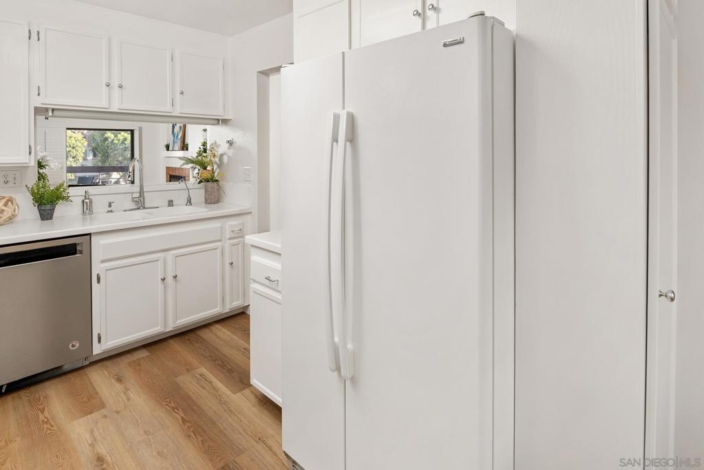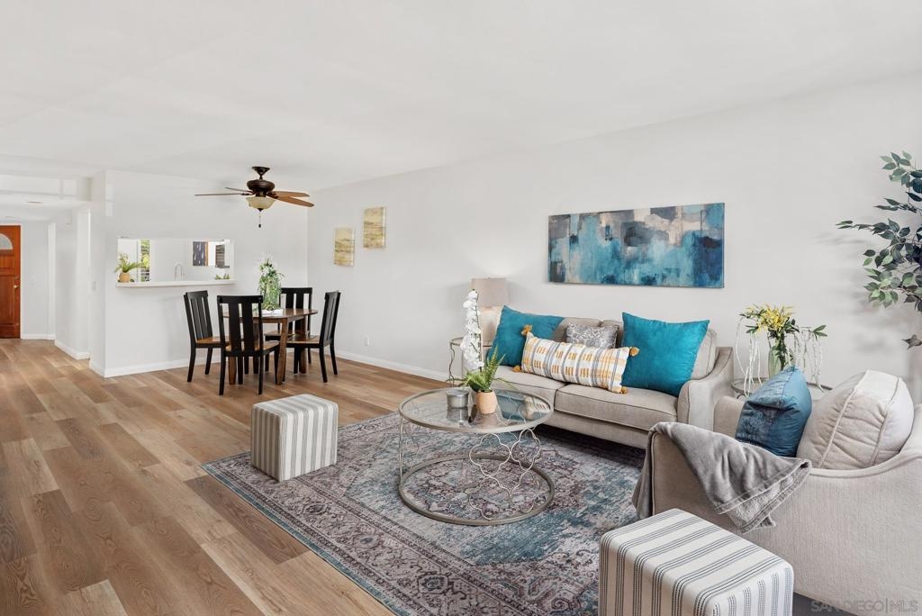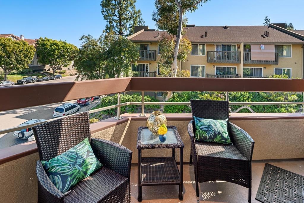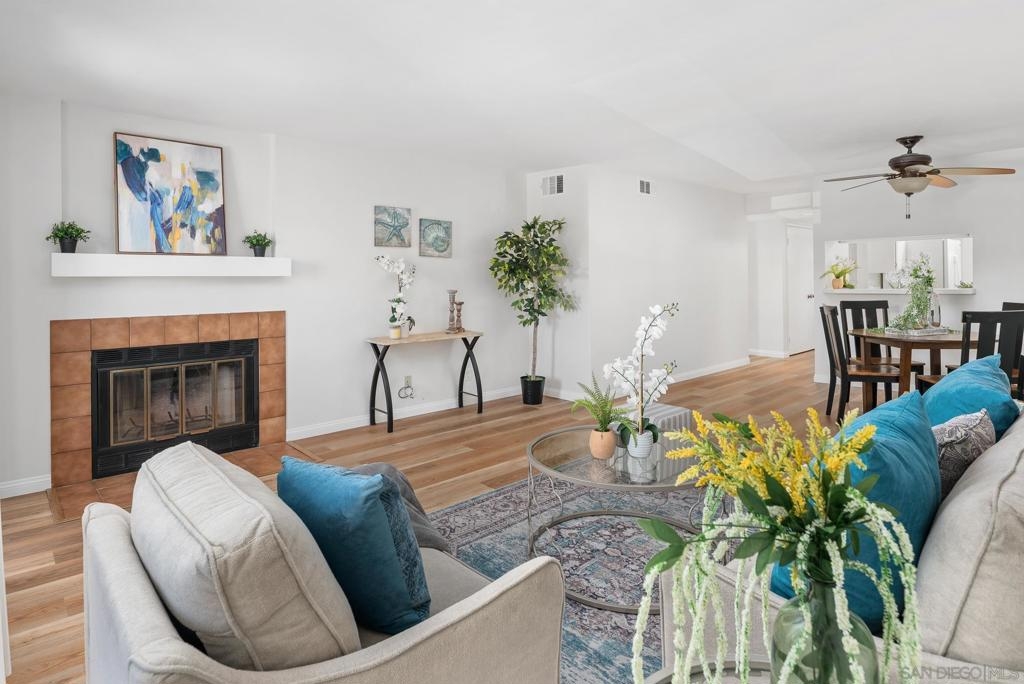 Stunning and spacious condominium steps from Cowles Mountain. New paint and flooring, The spacious kitchen offers a breakfast nook, stylish cabinets and granite counters. Beyond the kitchen is the formal dining area, which leads into the living room with cozy fireplace, and balcony access. The Primary bedroom features two closets. The in-unit laundry closet offers a full-sized washer and dryer. Residents enjoy a beautiful community pool, lush grounds, and two underground parking spaces. Additional storage closet included. Walk to shopping and dining, and take advantage of this property's close proximity to Lake Murray and Mission Trails. A great value and a true must see!