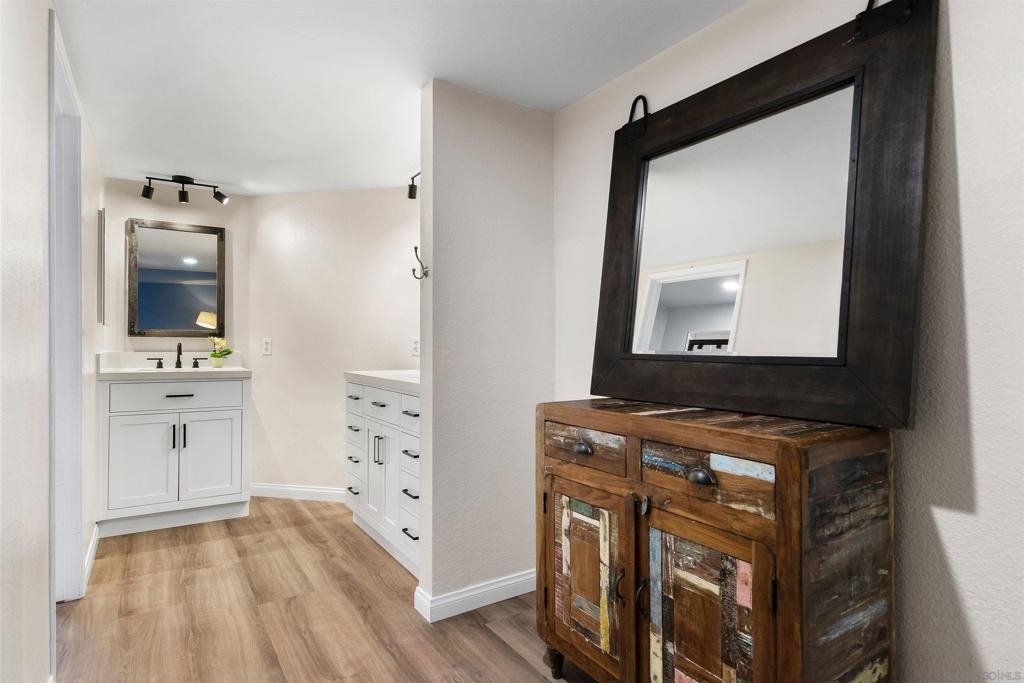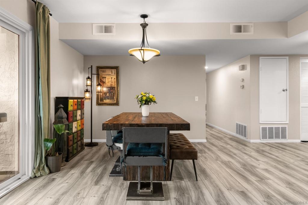 Rarely available in San Carlos, this largest-model, most desirable 3-bedroom, 2-bath corner unit in a gated community offers light-filled interiors and thoughtful upgrades throughout. The single-level ground floor home features all-new dual-pane windows, patio doors, and plantation shutters, complemented by a sleek kitchen with smart Samsung appliances and stylish LVP flooring throughout. The primary suite includes dual walk-in closets and a beautifully updated bathroom with modern vanities and a custom shower. This residence also offers a full-size in-unit washer and dryer, fireplace, central A/C, a large covered private patio with an oversized storage closet, and a generous separate garage storage unit. The home includes one garage parking spot and a second reserved space. Enjoy easy access to Cowles Mountain, Mission Trails, and Lake Murray, providing hiking, biking, and scenic outdoor recreation right in your backyard. Steps from grocery stores, coffee shops, dining, and other conveniences, with top-rated schools nearby, this exceptional condo delivers a perfect balance of comfort, location, and lifestyle.