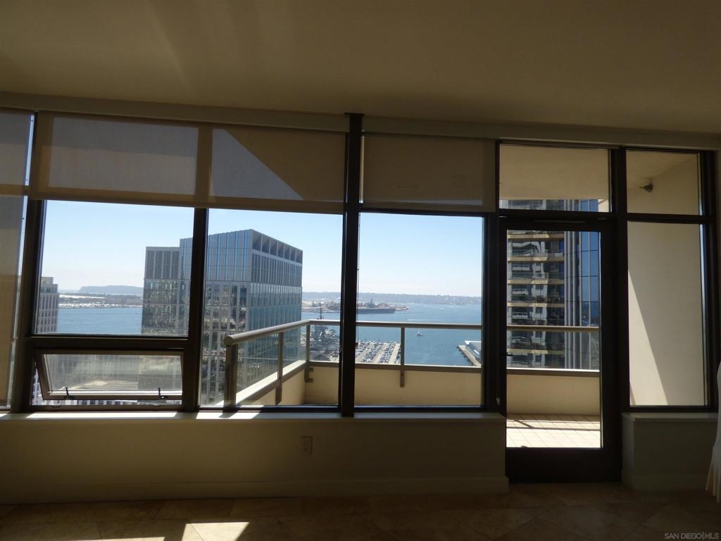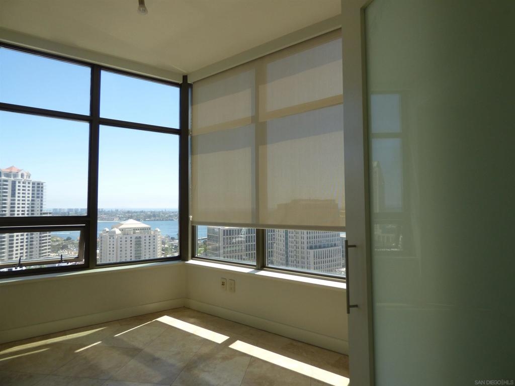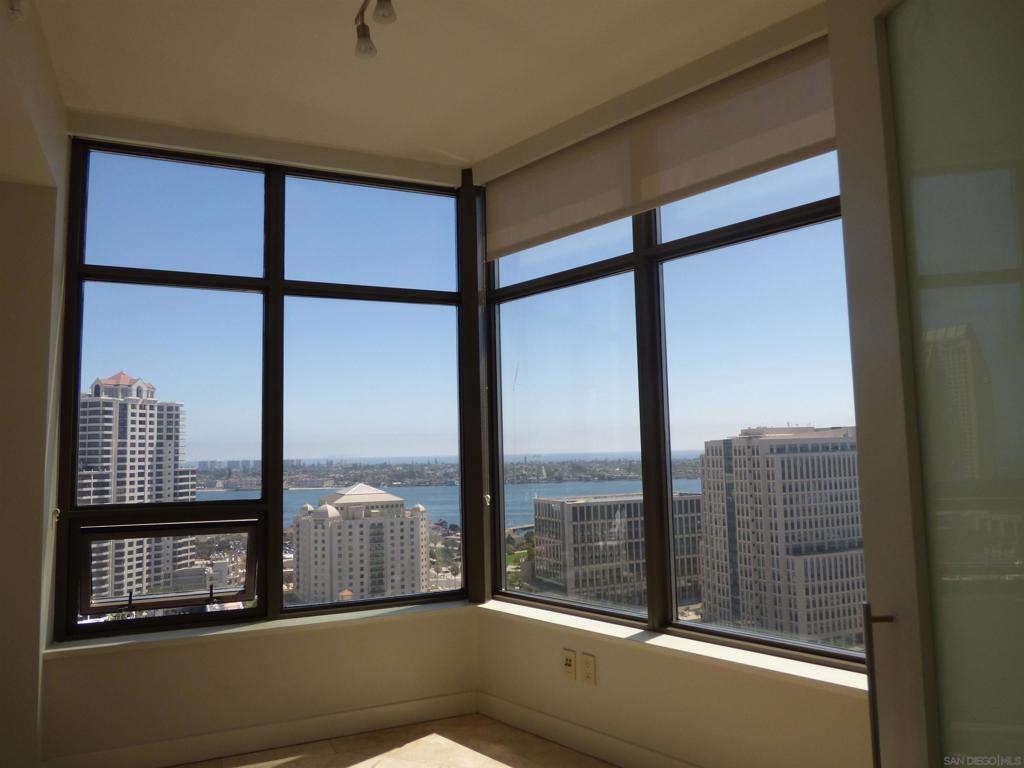 Great views from this corner Unit location on the 22nd floor. Views of the Bay and City lights of downtown San Diego. Spacious floor plan with 2 bedrooms plus a third room which can be an office or bedroom. Views from a ample balcony with sit down views from all rooms. Primary bedroom has a large walk in closet (2) side by side parking spaces plus storage