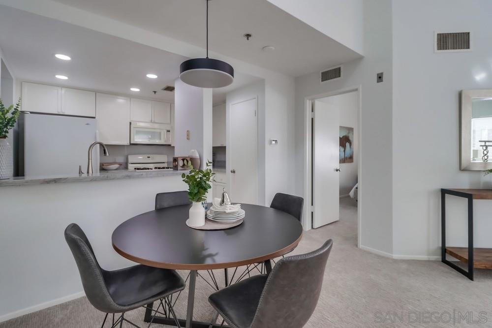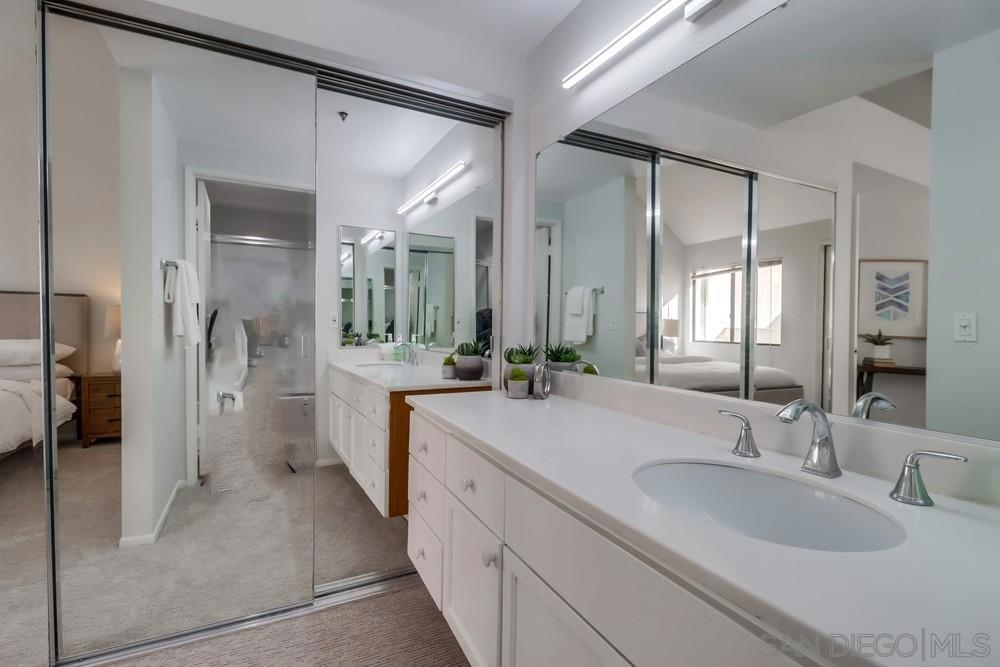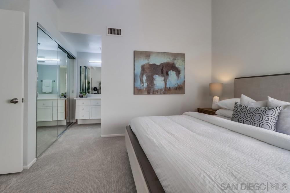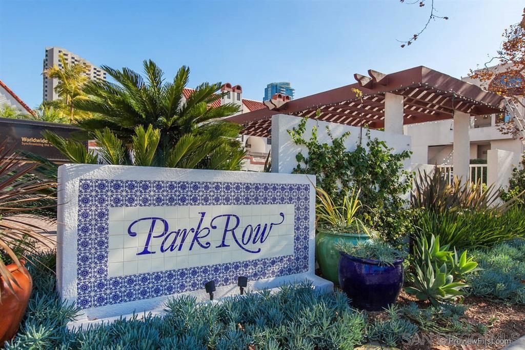 MAGNIFICENT SUN FILLED ONE BEDROOM PLUS LOFT IN THE ONE-OF-A-KIND SIX ACRE GARDEN OASIS "PARK ROW". Soaring 17 foot ceilings & no neighbors above! Brand new carpet & paint in 2023. New quartz counters & stainless sink, Brand new water heater. HVAC 6.5 years old. New light fixtures. Refreshed bath with new glass doors and new Kohler commode. The loft works as the perfect office or as a guest area complete with several closets . Added second bath with shower on loft level. Quiet interior location on the secluded Machado courtyard....not fronting streets or train tracks! Spacious south facing balcony. Year round heated pool and spa. MOVE-IN READY!!! MARINA DISTRICT'S ONLY LOW RISE GARDEN COMPLEX. SEE SUPPLEMENT FOR MORE NOTE: Optional 2nd "bedroom" is a loft which is open to the living room below. Large balcony can accommodate a dining set for 4 and more! Umbrellas and gas or electric BBQs are permitted on the balcony. Listing agent added 33 sf to the assessor estimate of 1017 to account for the added bathroom in the loft. This approx 33sf area used for the second bath was an inaccessible pre-existing block of unimproved space at the end of the loft hallway. ---------------------------------------------------Located in the quiet and upscale Marina District...short walks in every direction to the Bay, Convention Center, Little Italy, Seaport Village, trolley & AMTRAK. Only ten minutes to San Diego Airport! Park Row is a community of 222 units built on THREE GIANT CITY BLOCKS...this is stunningly low density when compared to nearly all other Downtown developments. The result is not only a generous apportionment of the grounds to gardens but unheard of space for the resort like pool, spa, clubhouse facility and guest parking. Stroll through the walkways of Park Row and enjoy the variety of trees and flowering plants...each courtyard has it's own unique garden & fountain style. Park Row is adjacent to Pantoja Park on G Street. Residents enjoy direct security gate access to the complex from this beautiful park. Pantoja Park is also the perfect place to take your dog for a walk and meet the neighbors! Park Row allows up to 2 pets with no weight limit. See HOA rules for more details. All units in Park Row come with one assigned parking space in the underground lot. Residents can rent an additional parking space for $60/month from the HOA. Ask agent about parking rules. Generous allowance for guest parking in the outside lot adjacent to clubhouse. Each unit has a small storage cabinet in the garage. Bike cage and bike "vaults" are available for rent from the HOA. Pool and spa are heated year round. On site manager and 24 hour guard service with video surveillance monitoring. Delivered packages are safely held in the clubhouse for pickup when you get home. And speaking of the CLUBHOUSE: It can be reserved for an nominal $30 fee for parties and private events!!