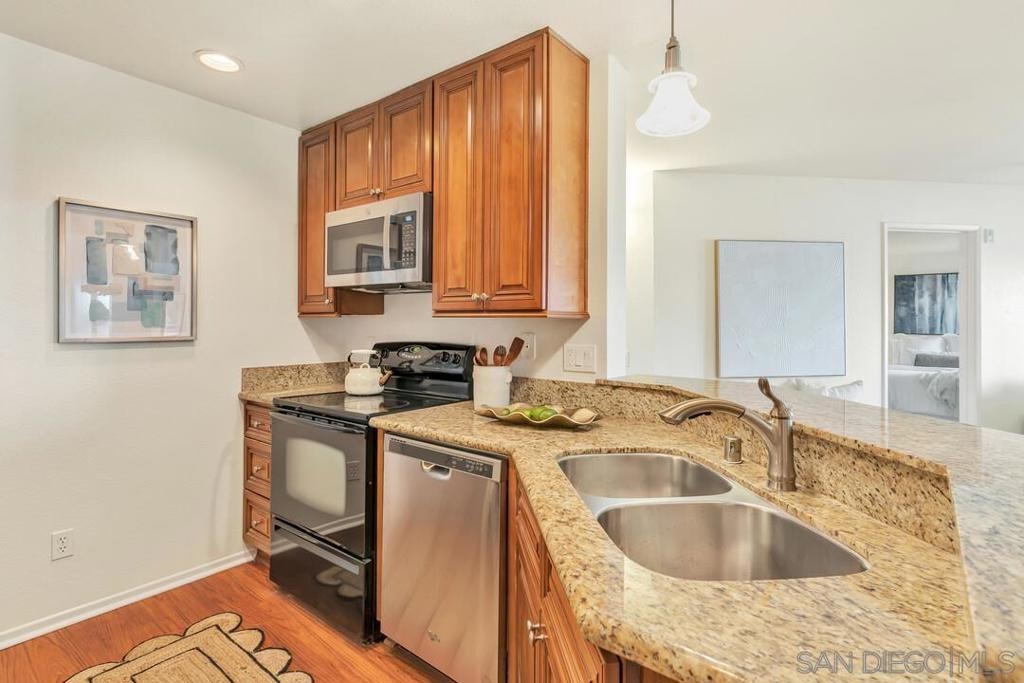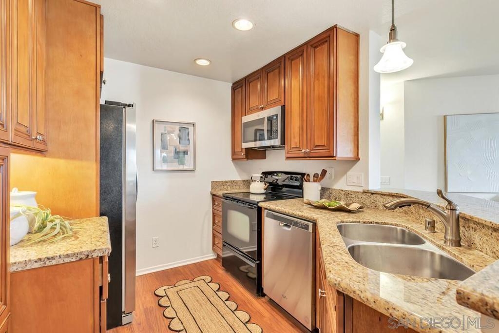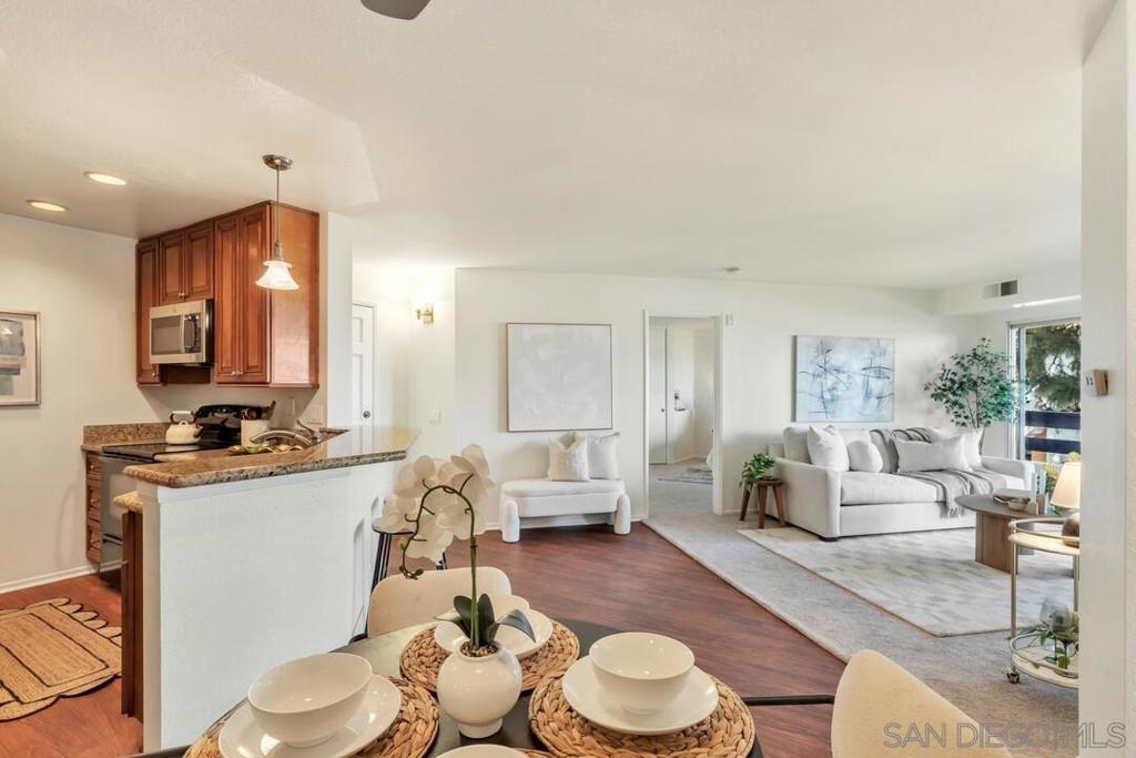 Welcome to your new home, where style, comfort, and convenience come together seamlessly. Step inside this beautifully updated home and immediately notice the fresh feel of brand-new carpet and paint throughout. The kitchen and dining area showcase beautiful laminate flooring, and a fully upgraded kitchen complete with new stainless-steel appliances. Abundant with natural light, the living room features an expansive sliding glass door that stretches across the living room wall and opens into an oversized private patio. Both bedrooms offer patio access and are thoughtfully located on opposite ends of the home for added privacy. Enjoy the convenience of in-unit laundry, no stairs to the unit, and an attached 2-car tandem garage with easy access to your front door. The City Scene complex offers resort-style amenities, including a pool, spa, and gym, as well as the added benefit of water and trash services covered by the HOA. Tucked away in the peaceful hills, this home is just minutes from local dining and shopping, offering easy freeway access and providing the perfect balance of tranquility and convenience. Broker and Broker Agents do not represent or guarantee the accuracy of the square footage, permitted or unpermitted space, bd/ba count, lot size/dimensions, schools, or other information concerning the conditions or features of the property. Buyer is advised to independently verify the accuracy of all information through personal inspection & with appropriate professionals to satisfy themselves.