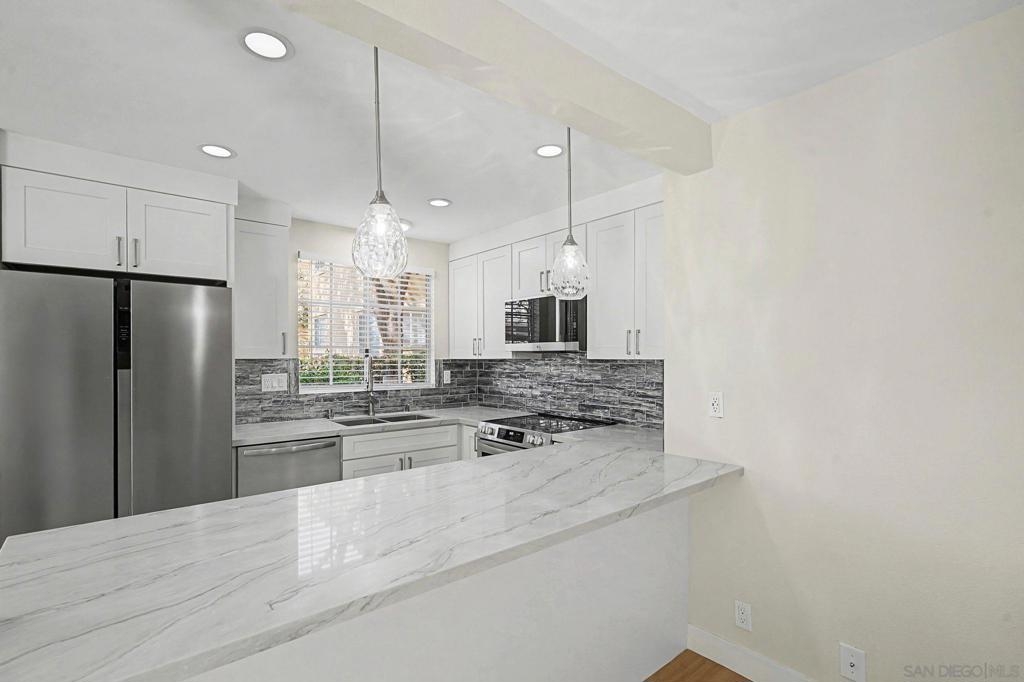Recently remodeled and move-in ready, this southwest-facing condo in the desirable Canyon Park Villas community offers modern comfort and style. Step into the open-concept living room that flows seamlessly into a fully remodeled kitchen, perfect for both everyday living and entertaining. Stay cool year-round with a brand new air conditioning system. Enjoy indoor-outdoor living on the expansive wrap-around patio, ideal for relaxing or hosting guests. The home also includes a full-size washer and dryer and TWO dedicated parking spaces for added convenience. This quiet complex features a sparkling pool, soothing jacuzzi, and ample guest parking, all tucked off a serene road in a highly desirable area of Mira Mesa. Must see to appreciate the possibilities!
